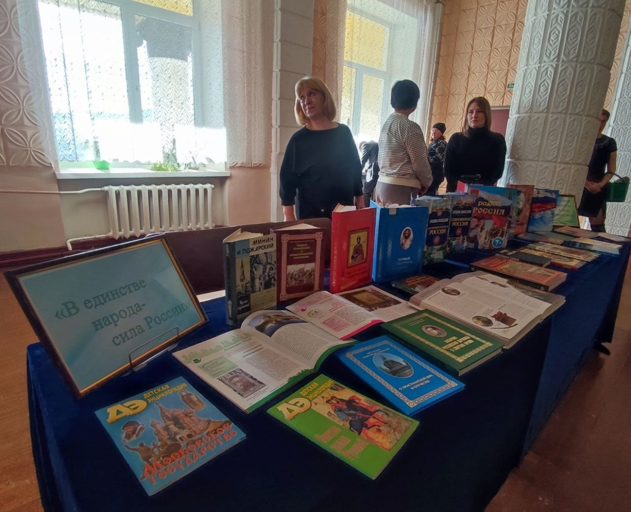 Здесь же расположилась выставка Центральной городской библиотеки, работавшей под девизом «В единстве народа – сила России». Она посвящена истории Казанской иконы Божией Матери, ее чудотворным свойствам и роли в укреплении национального самосознания и духовного единства российского народа. Здесь также были представлены материалы о значении православной веры в истории России и её вкладе в формирование национальной идентичности.