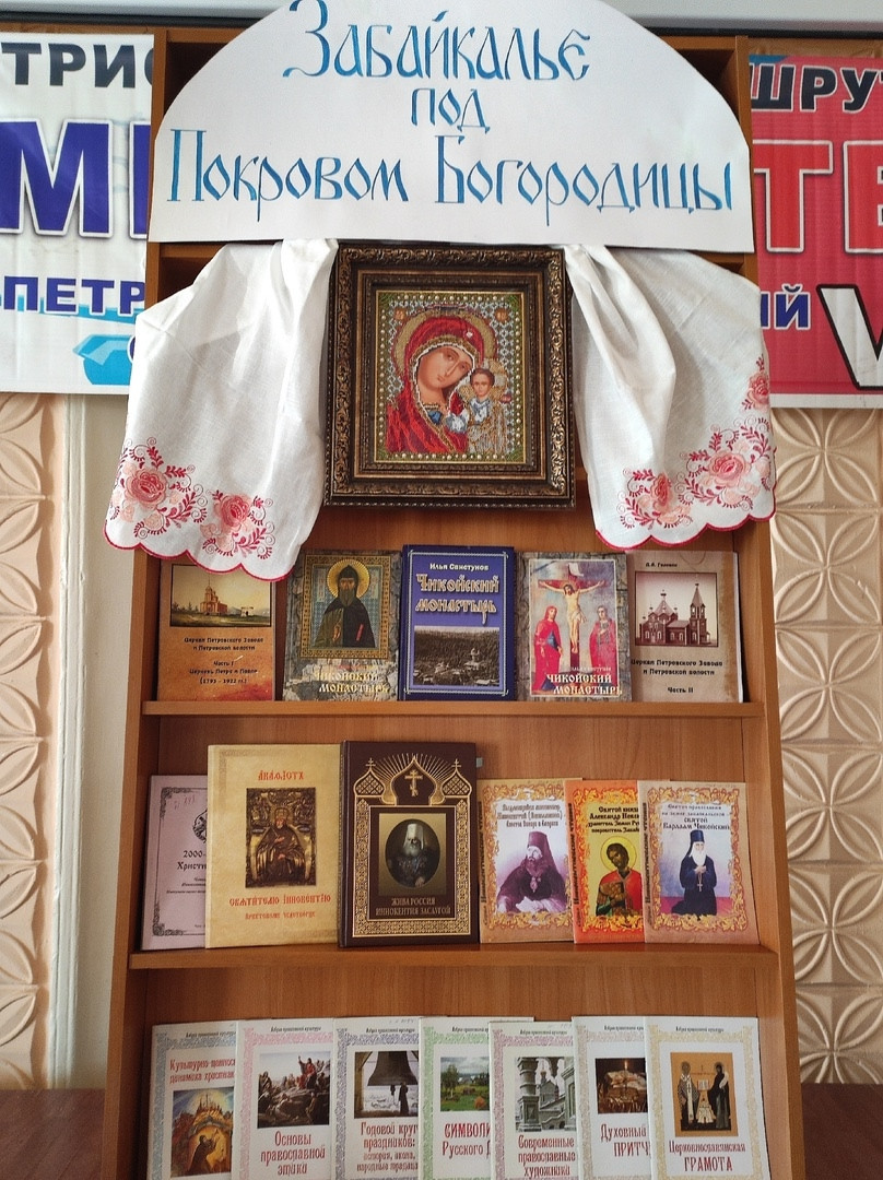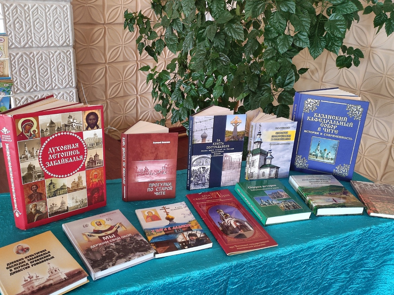 Во Дворце культуры и спорта развернулась книжная выставка, организованная соборным храмом Покрова Пресвятой Богородицы под названием «Забайкалье под Покровом Богородицы».