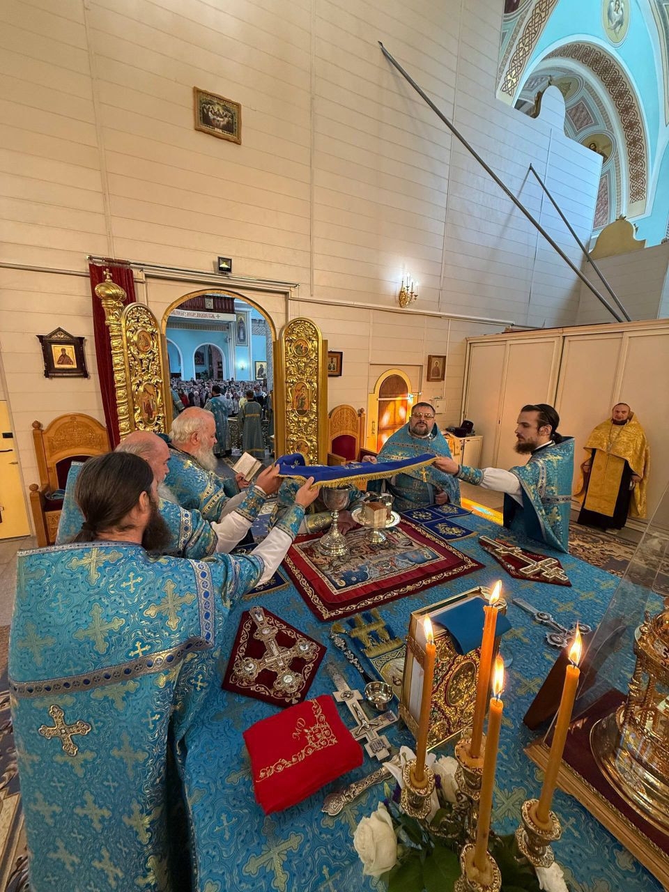 Диаконский чин: иеродиакон Иннокентий (Федоров), диакон Михаил Воробьёв, диакон Дионисий Донской, диакон Илия Хасанов.