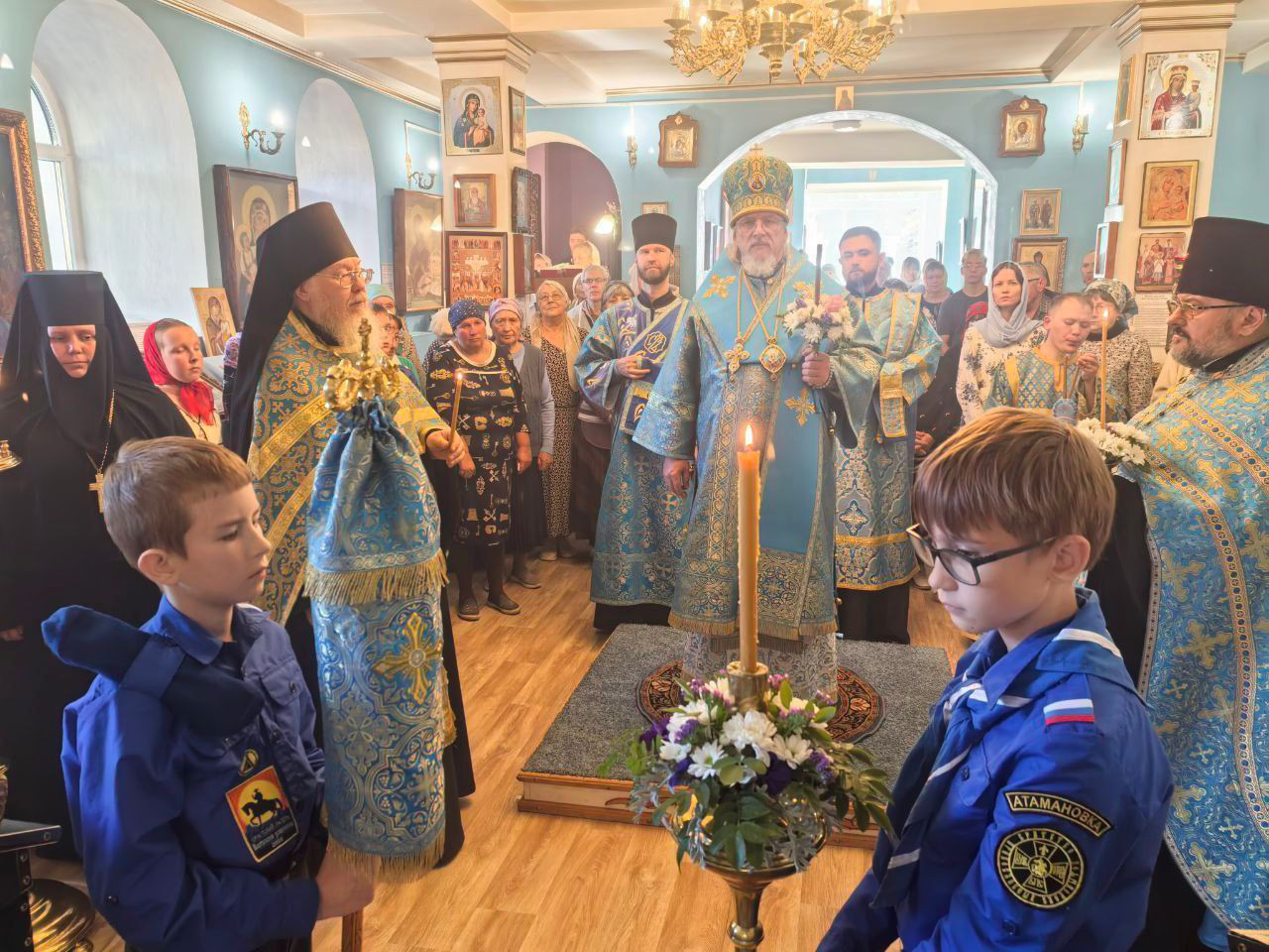 Вечером, 20 сентября 2025 года, в неделю 15-ю по Пятидесятнице, пред Воздвижением, в канун Рождества Пресвятой Владычицы Богородицы и Приснодевы Марии, митрополит Читинский и Петровск-Забайкальский Димитрий совершил Всенощное бдение в храме Рождества Пресвятой Богородицы, в пгт. Атамановка Читинского района.