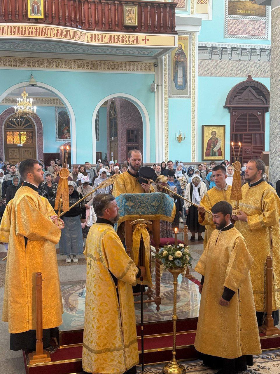 Диаконский чин: иеродиакон Иннокентий (Фёдоров), диакон Михаил Воробьёв, диакон Илия Хасанов, диакон Кирилл Усынин.
