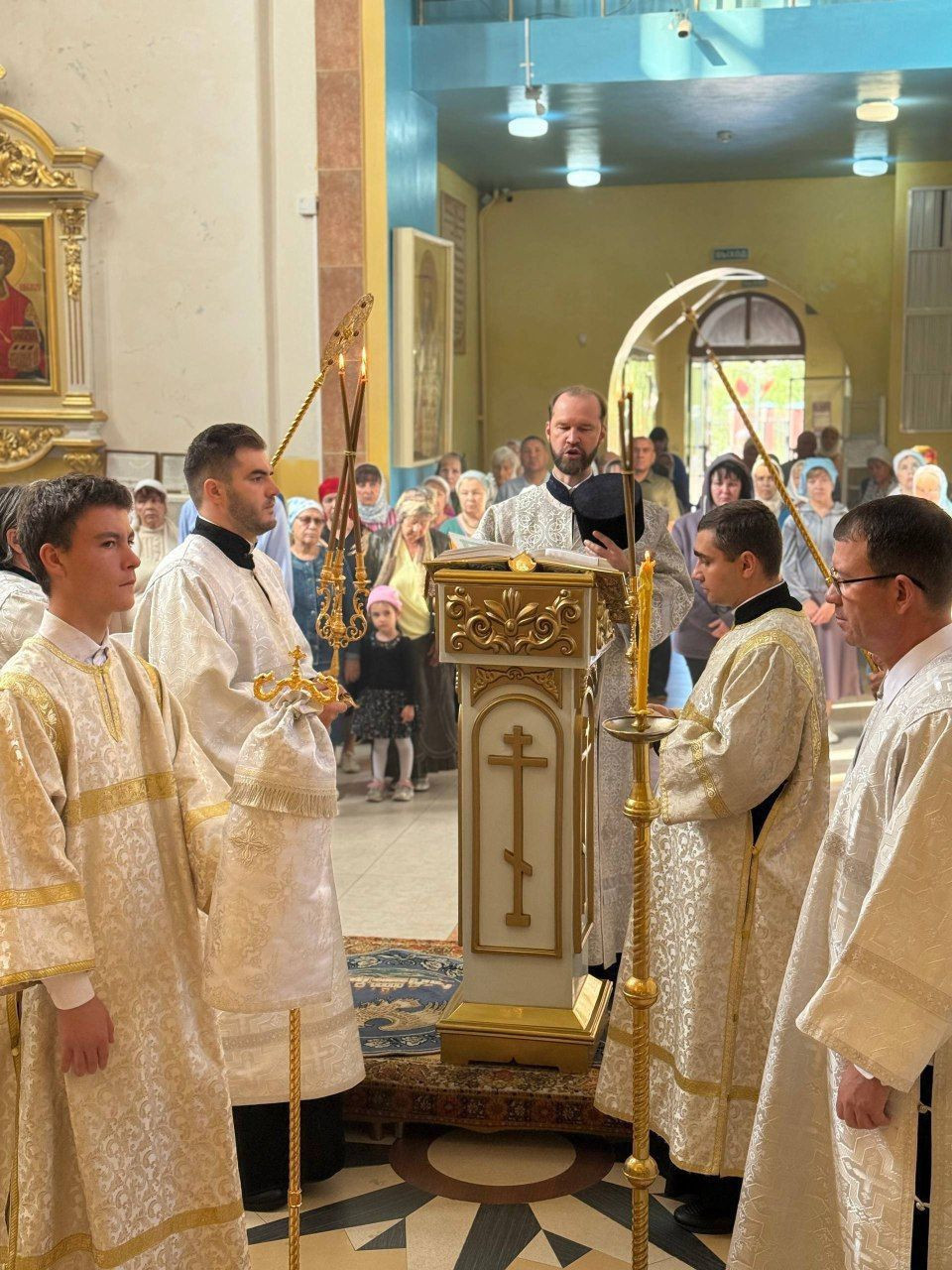 Диаконский чин: иеродиакон Иннокентий (Фёдоров), диакон Андрей Окладников, диакон Илия Хасанов; диакон Кирилл Усынин; диакон Игорь Радьков.