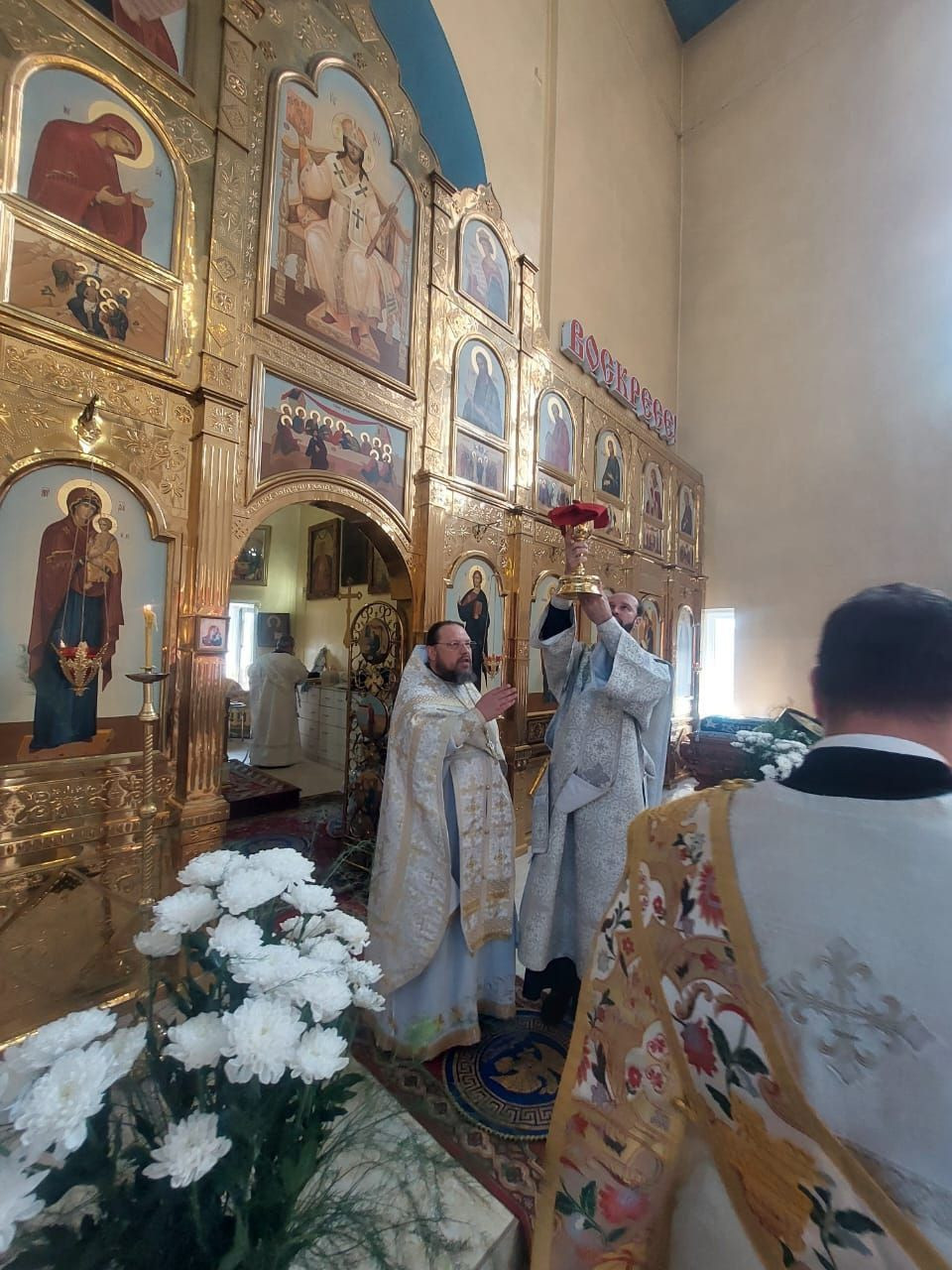 Архипастырям сослужили: секретарь Нерчинской епархии, настоятель соборного храма Спаса Нерукотворного Образа г. Краснокаменск игумен Симеон (Зимняков); клирик соборного храма Спаса Нерукотворного Образа г. Краснокаменск протоиерей Ростислав Зинченко; настоятель храма апостола и евангелиста Луки г. Балей иерей Владислав Петров; ключарь кафедрального собора Воскресения Христова г. Нерчинск иерей Роман Пичуев.