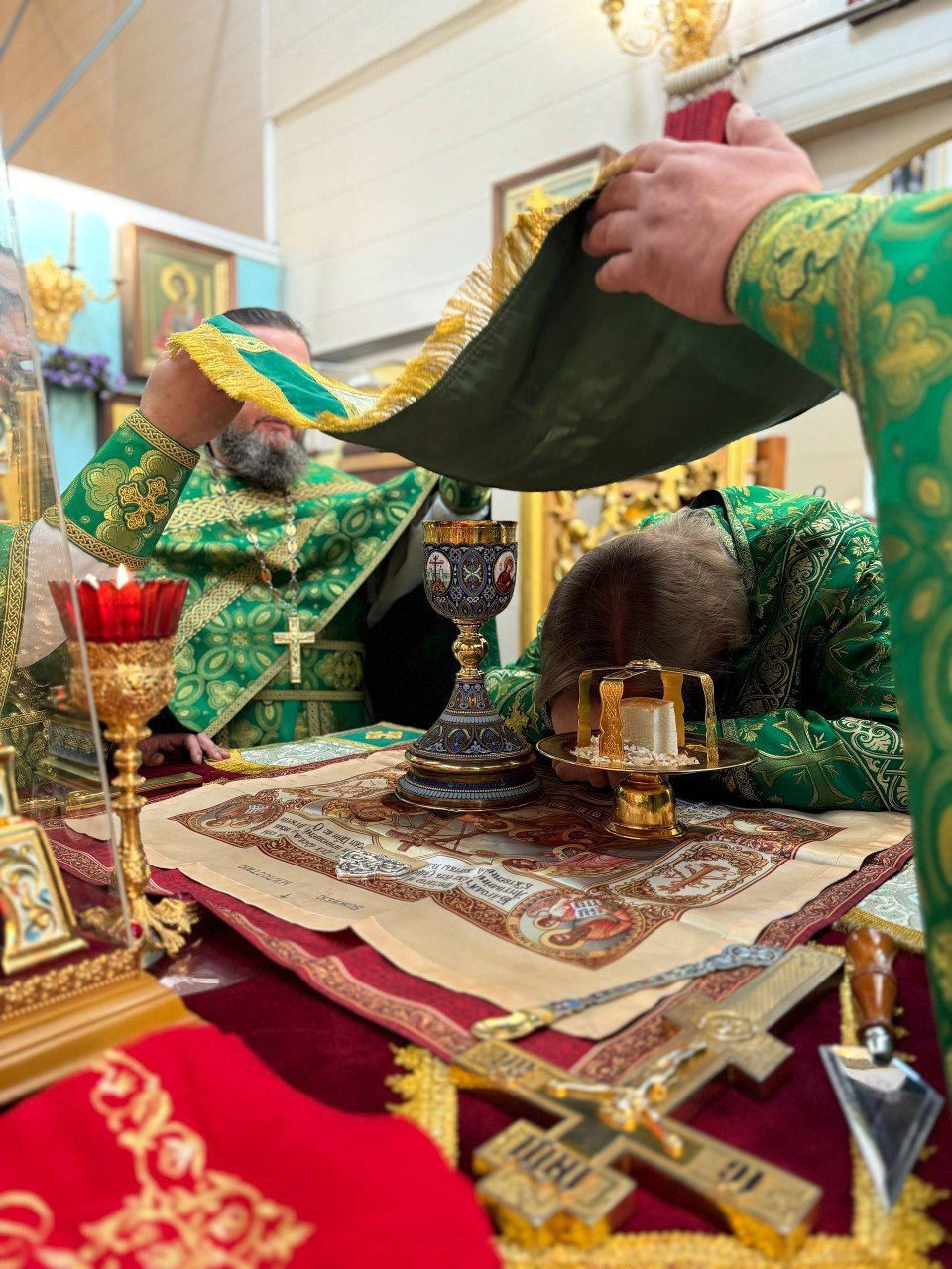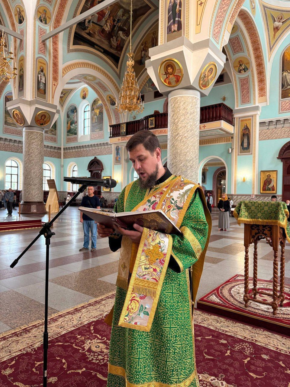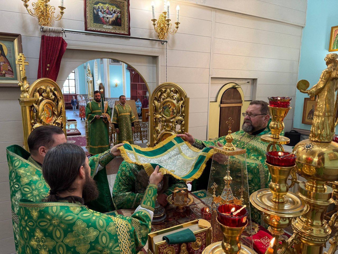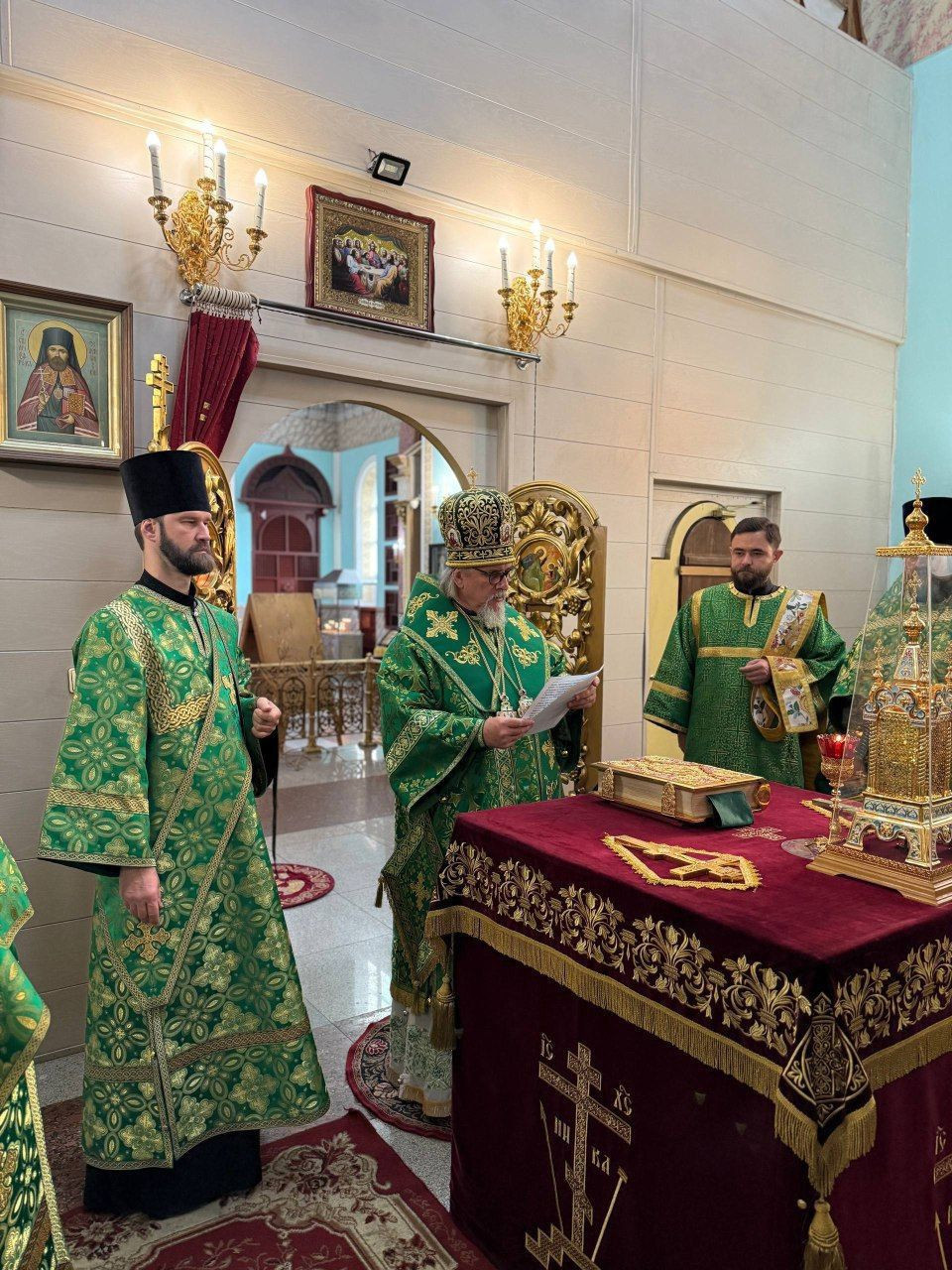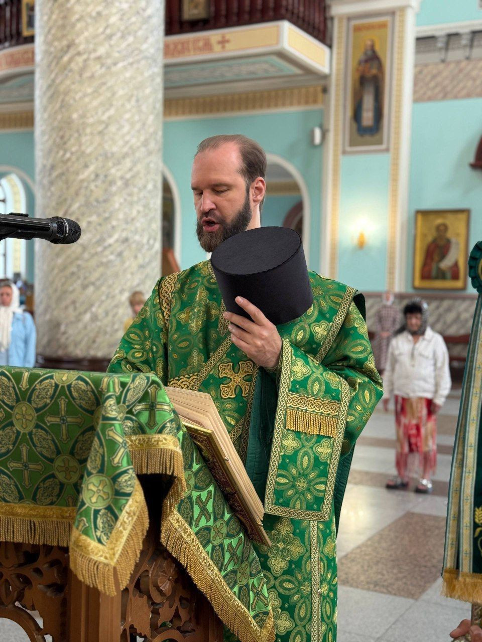 Диаконский чин: иеродиакон Иннокентий (Фёдоров), диакон Дионисий Донской, диакон Илия Хасанов, диакон Кирилл Усынин.