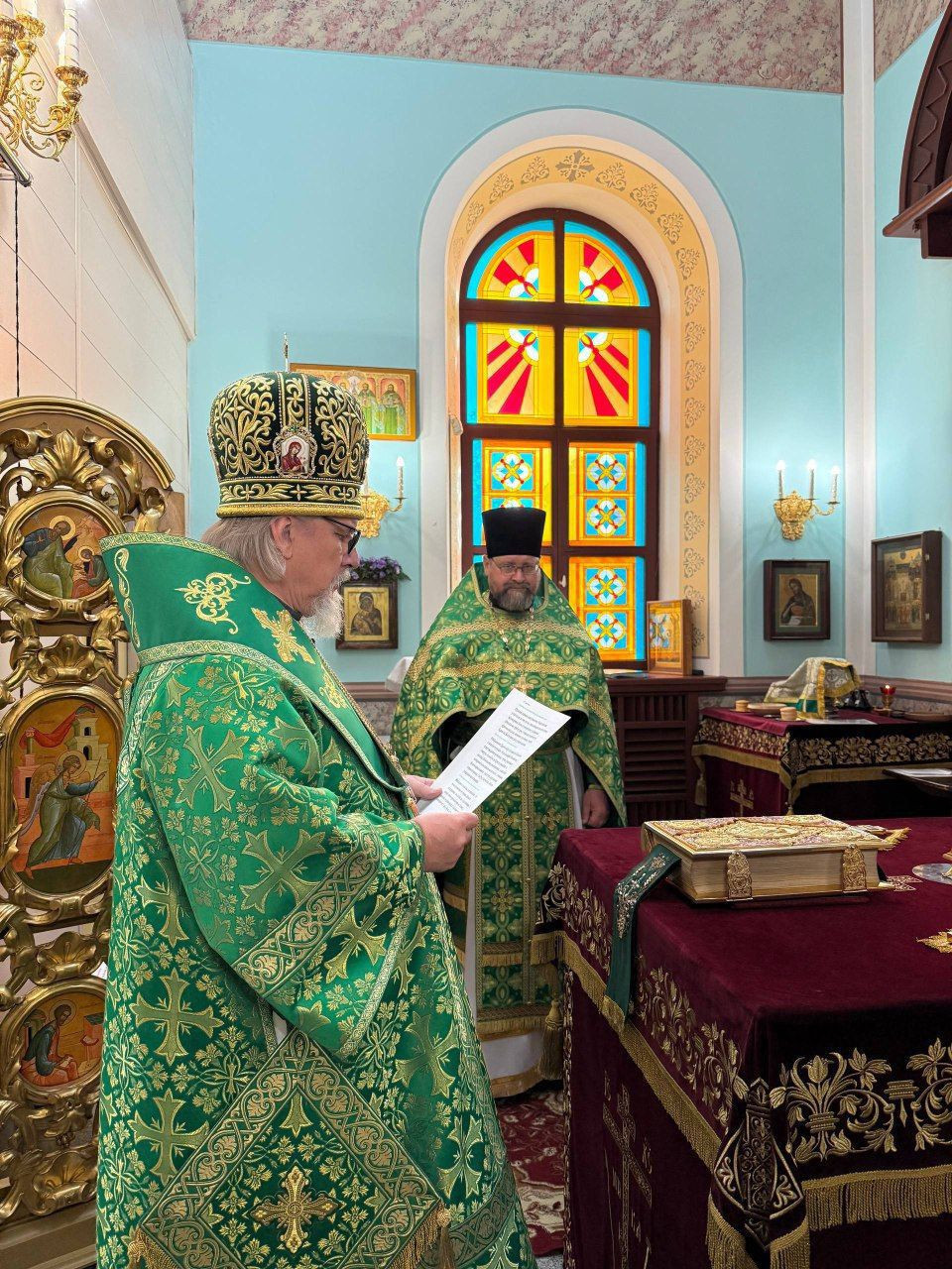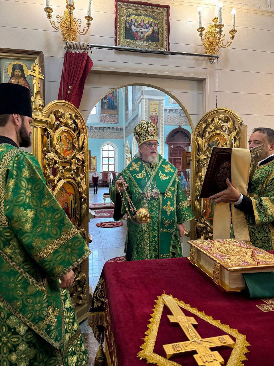 Его Высокопреосвященству сослужили: иерей Алексей Шаталов, иерей Алексей Янковский, иерей Валерий Шаферов и иерей Дионисий Миронов.