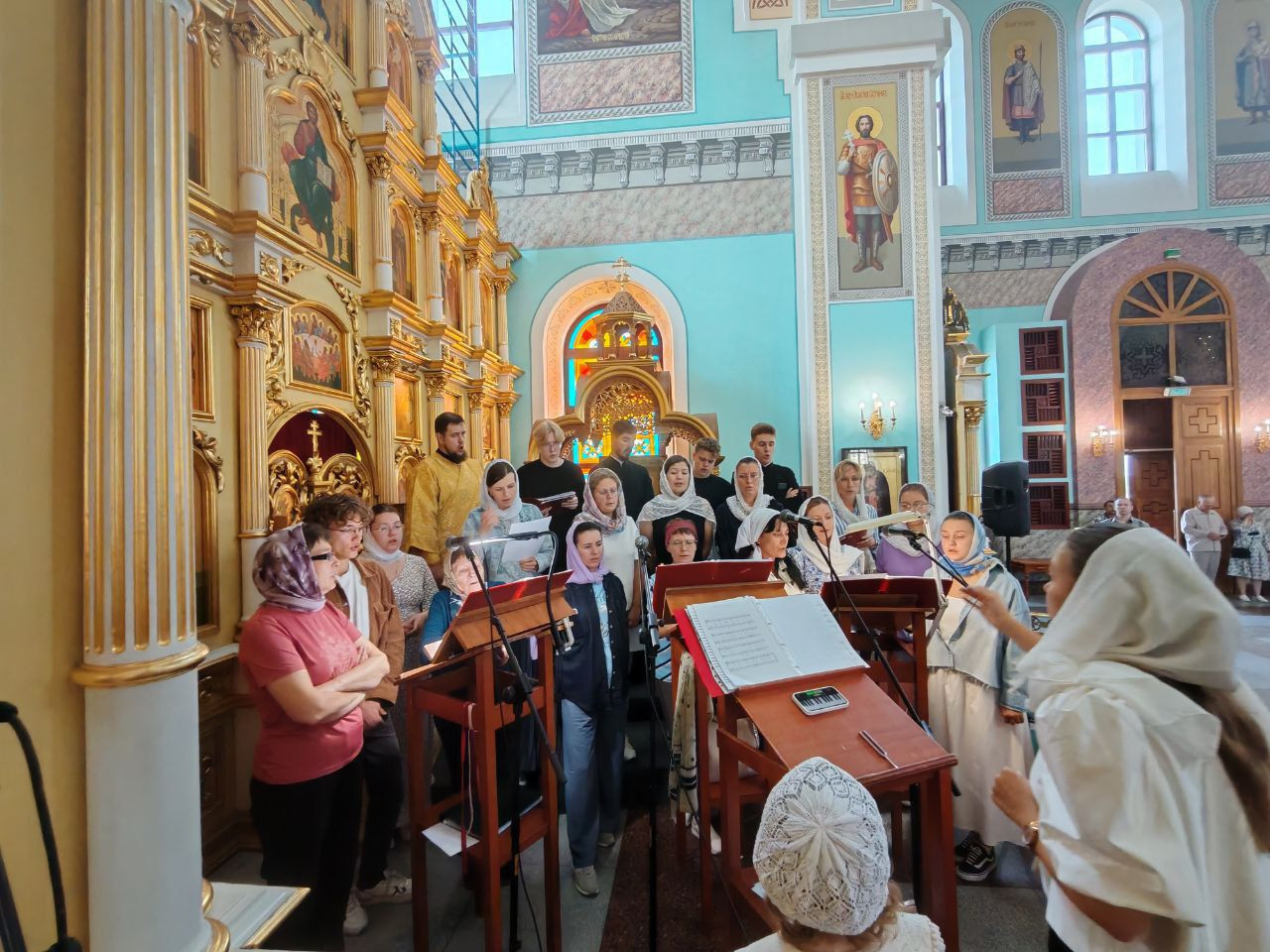Богослужебные песнопения исполнил хор Казанского кафедрального собора г. Читы под руководством Татьяны Александровны Медведевой.