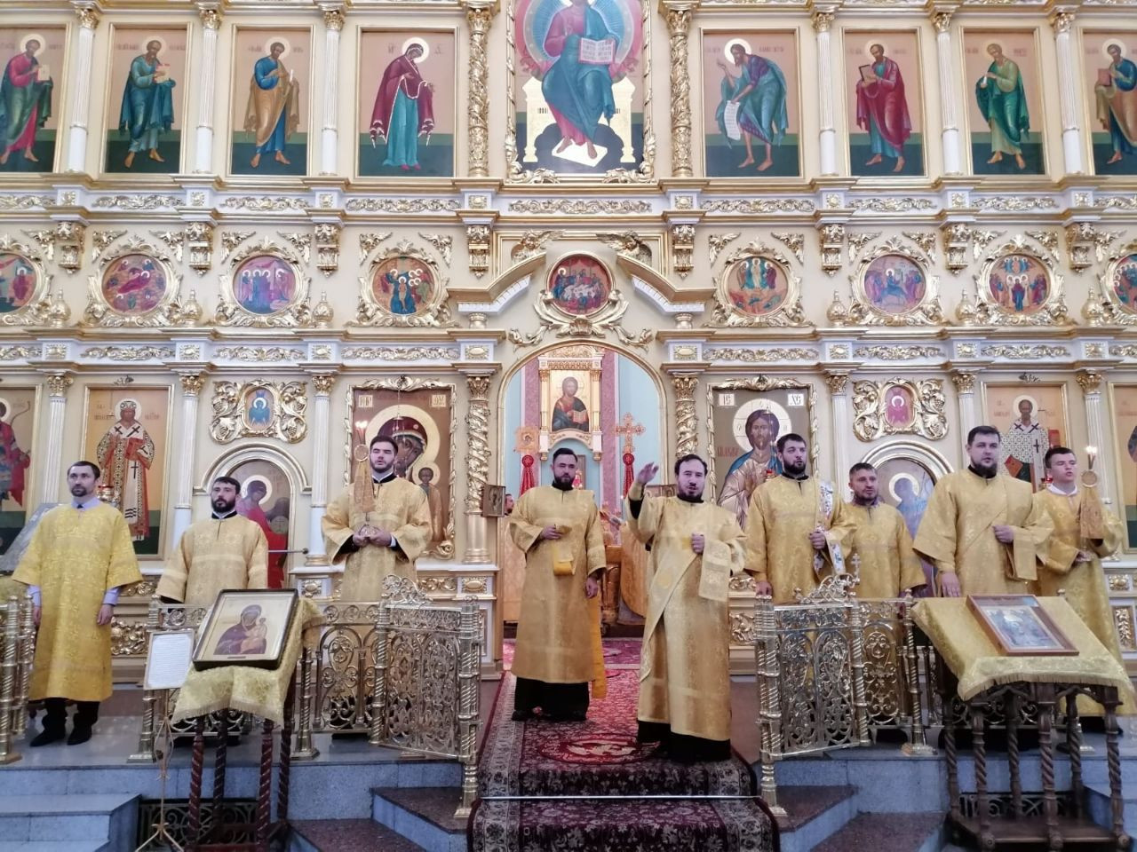 Диаконский чин возглавили: диакон Михаил Воробьев, диакон Дионисий Донской, диакон Андрей Лощенко.