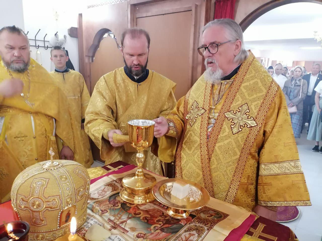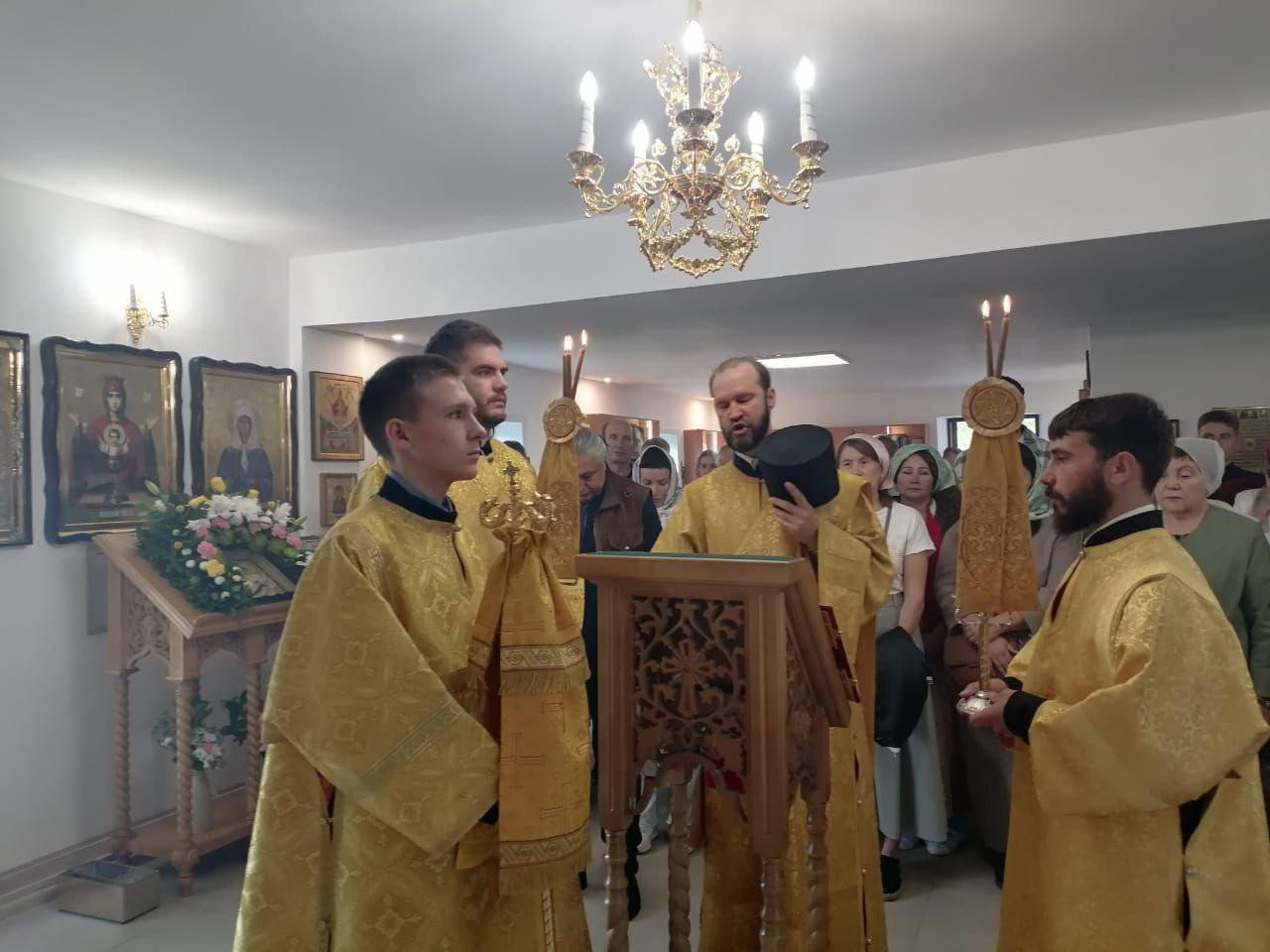 Его Высокопреосвященству сослужили: настоятель храма великомученика и целителя Пантелеимона — иеромонах Александр (Михайлов), клирик женского монастыря в честь Всех святых, в земле Русской просиявших, в пгт. Атамановка Читинского района, иеромонах Алипий (Федотов), благочинный 3-го Читинского округа, настоятель храма Архангела Михаила с. Улёты — иеромонах Варлаам (Попов).