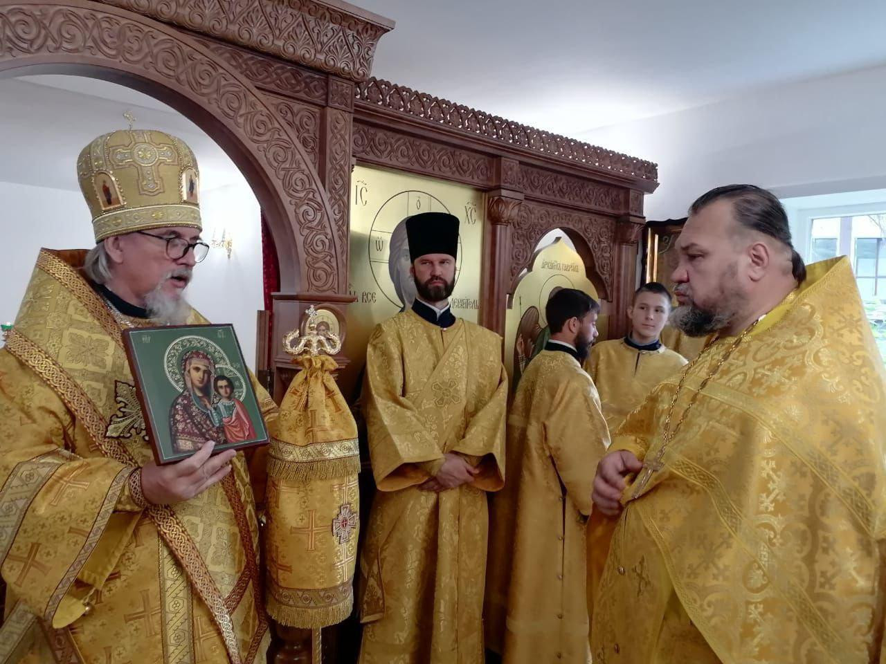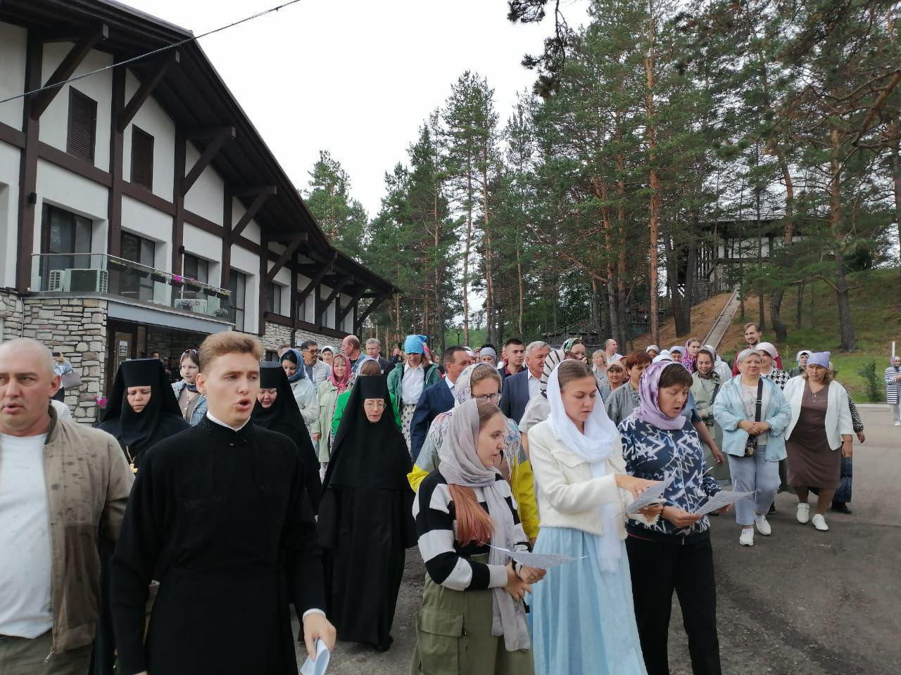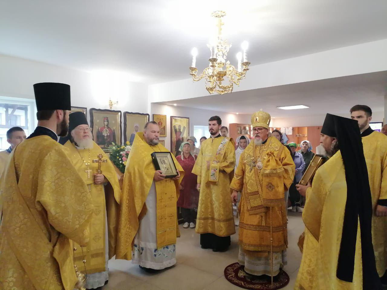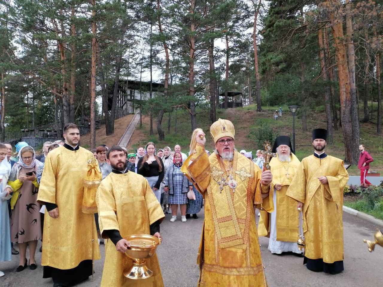 По окончании литургии архипастырь с духовенством и прихожанами возглавил молебен с крестным ходом вокруг храма.