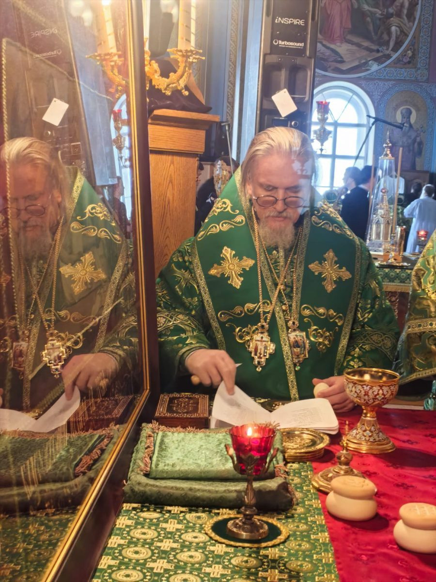 11 июля 2025 года, в день памяти преподобных Сергия и Германа Валаамских, чудотворцев (ок. 1353), митрополит Читинский и Петровск-Забайкальский Димитрий с сонмом архиереев и духовенства сослужил Святейшему Патриарху Кириллу за Божественной литургией в верхнем храме Спасо-Преображенского собора Спасо-Преображенского Валаамского ставропигиального мужского монастыря.