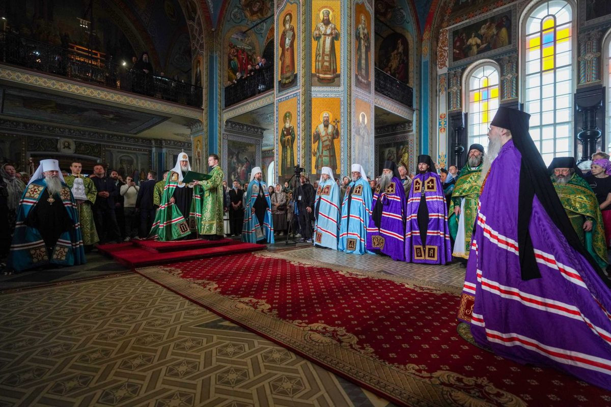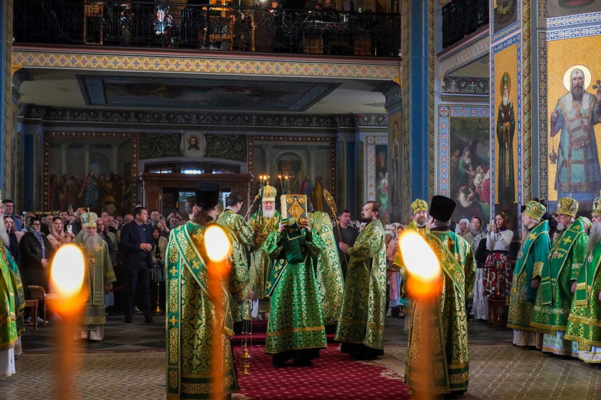 На сугубой ектении были вознесены особые прошения. Предстоятель Русской Церкви прочитал молитву о Святой Руси.