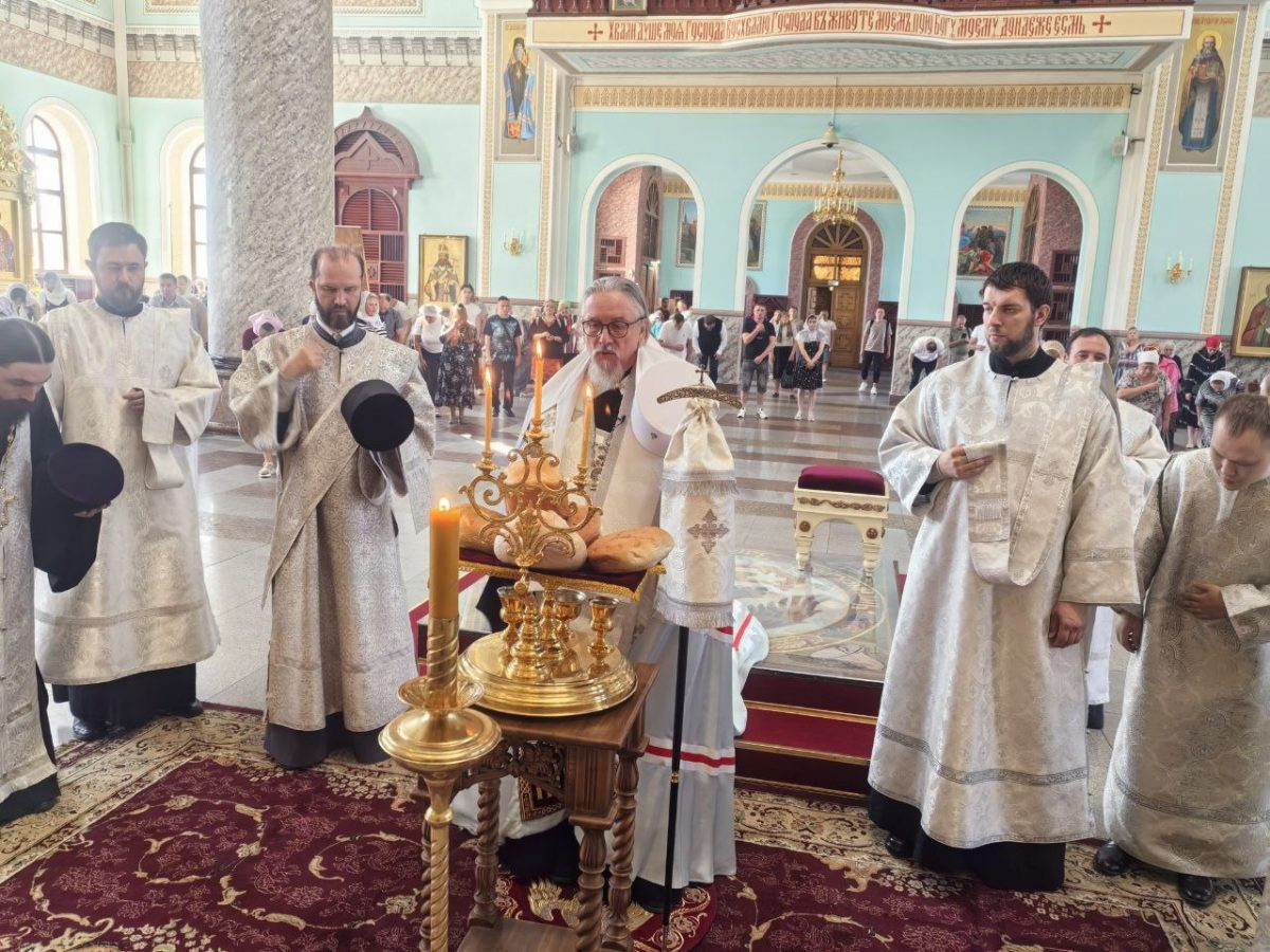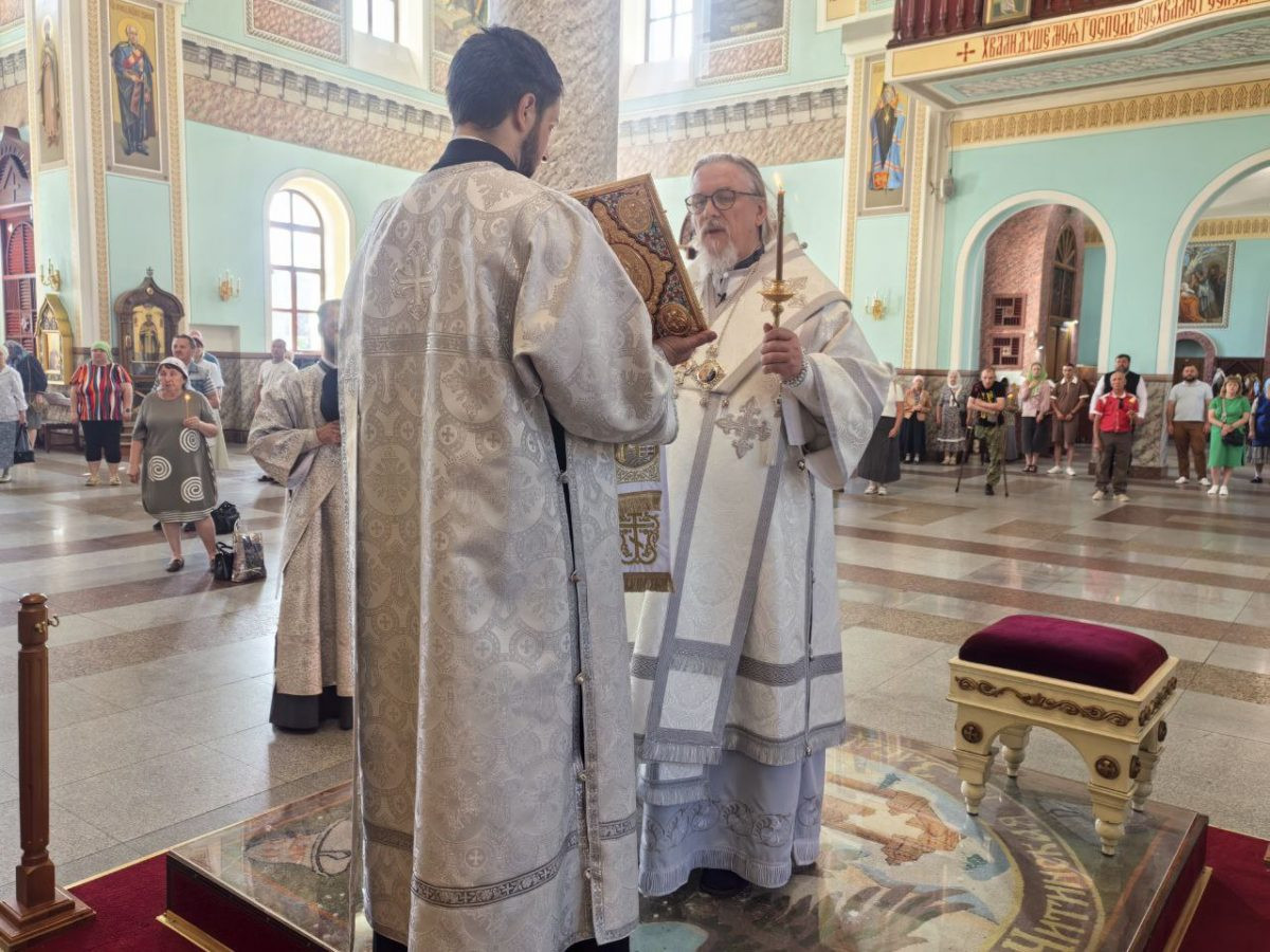 Диаконский чин: иеродиакон Иннокентий (Федоров), диакон Михаил Воробьев, диакон Дионисий Донской; диакон Андрей Лощенко.