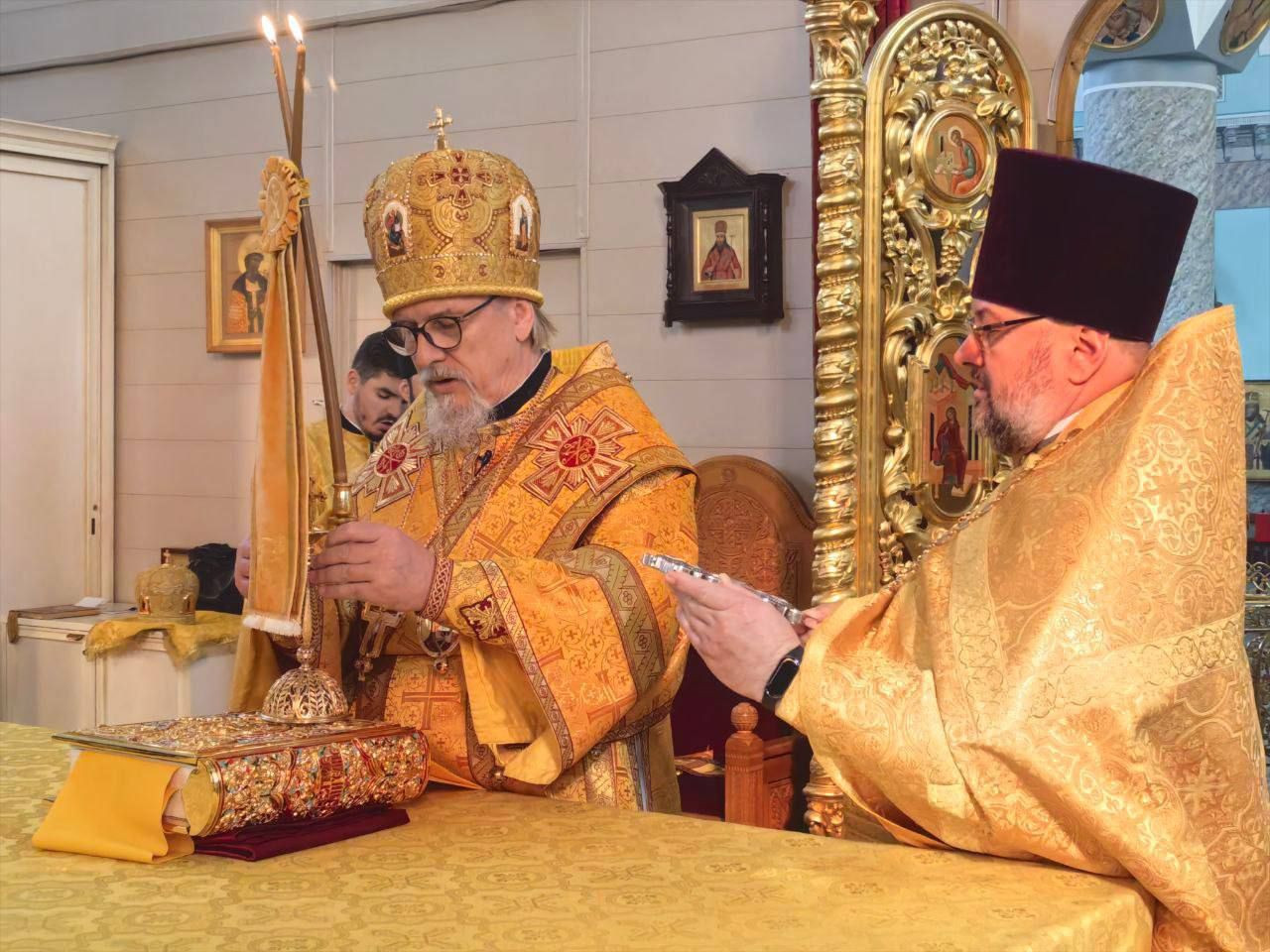 Его Высокопреосвященству сослужили: игумен Сафроний (Валов), иеромонах Феофан Груша, протоиерей Михаил Андрусь, протоиерей Андрей Федотов, иерей Михаил Рымарев.