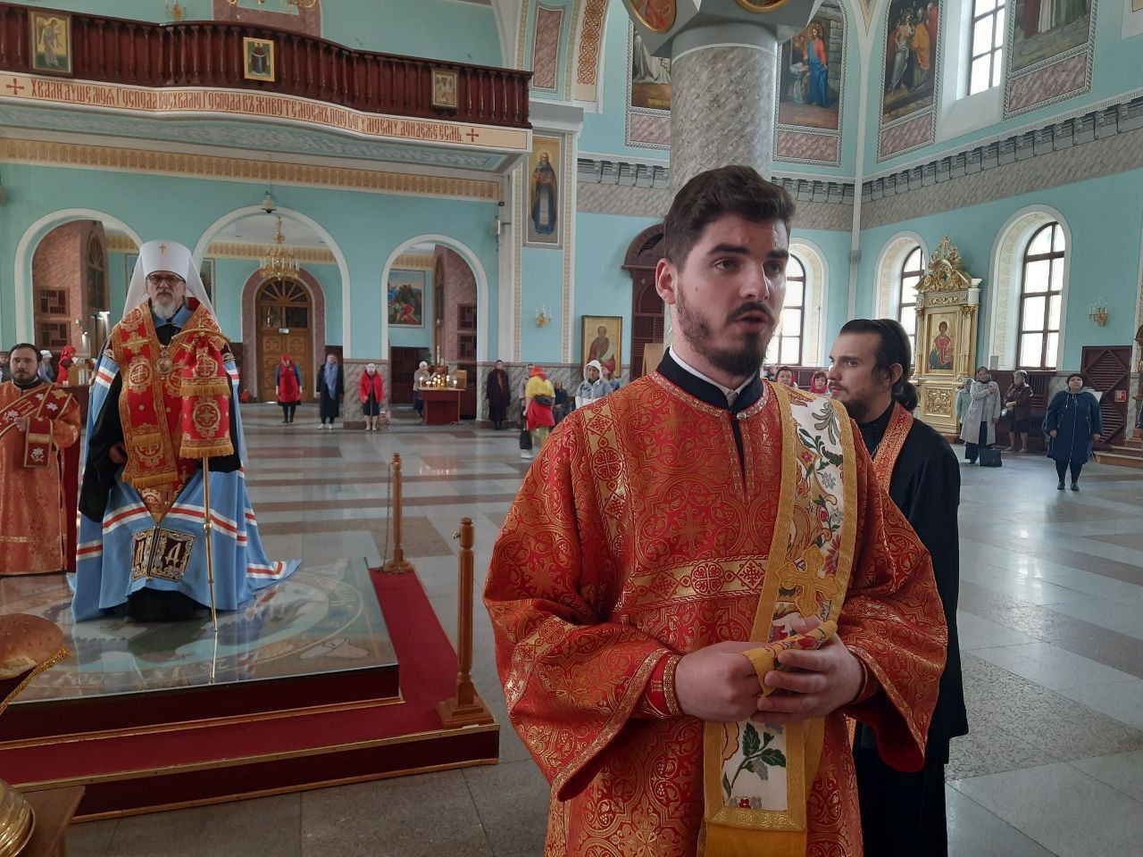 Диаконский чин: диакон Михаил Воробьев, диакон Кирилл Усынин.