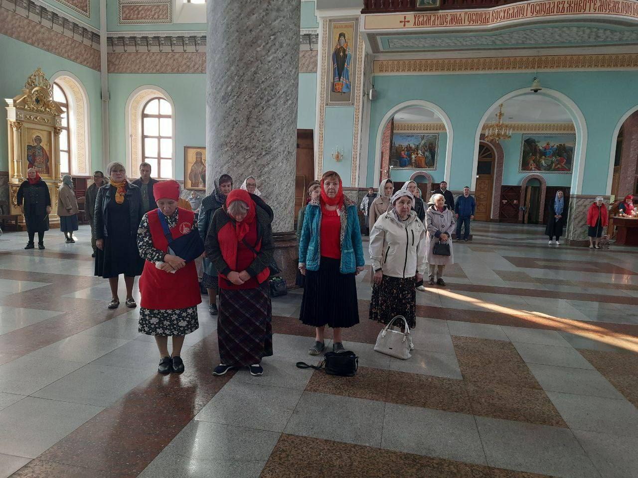 Его Высокопреосвященству сослужил клир собора: