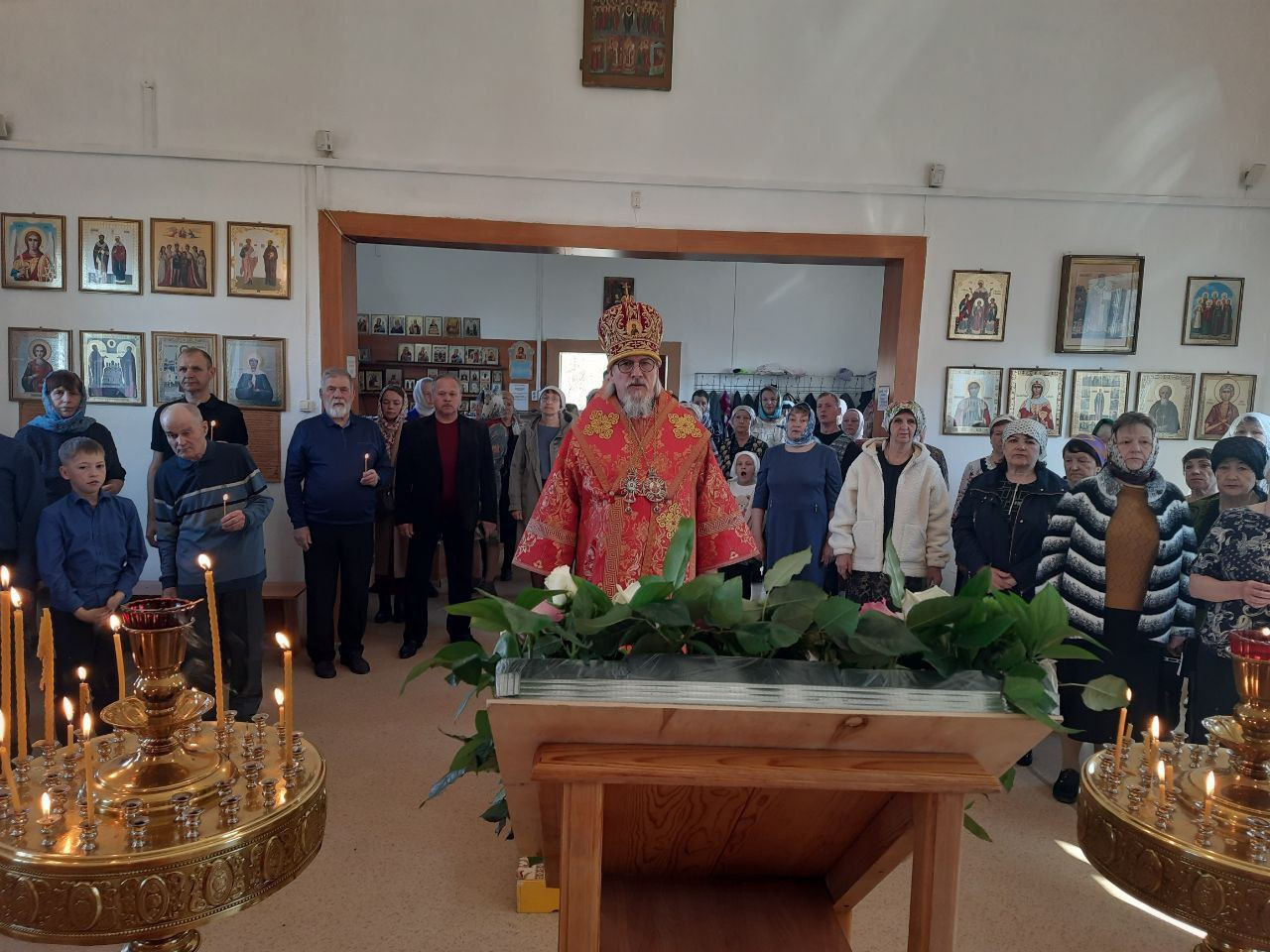 В конце владыка обратился к прихожанам с архипастырским словом и вручил всем пасхальные подарки.