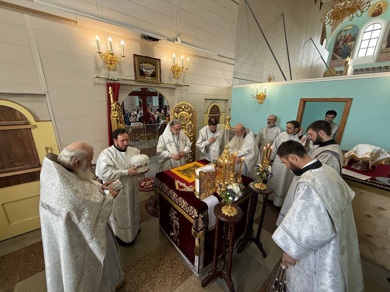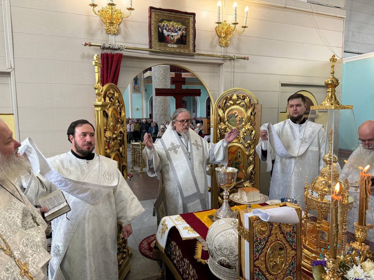 Его Высокопреосвященству сослужили клирики Казанского кафедрального собора.