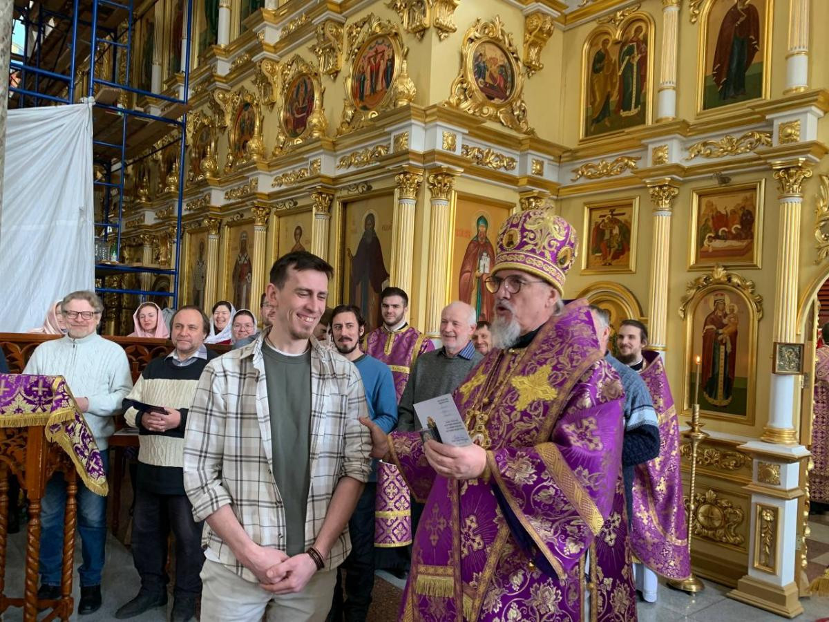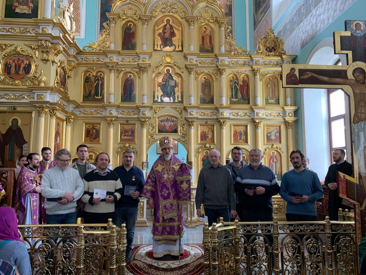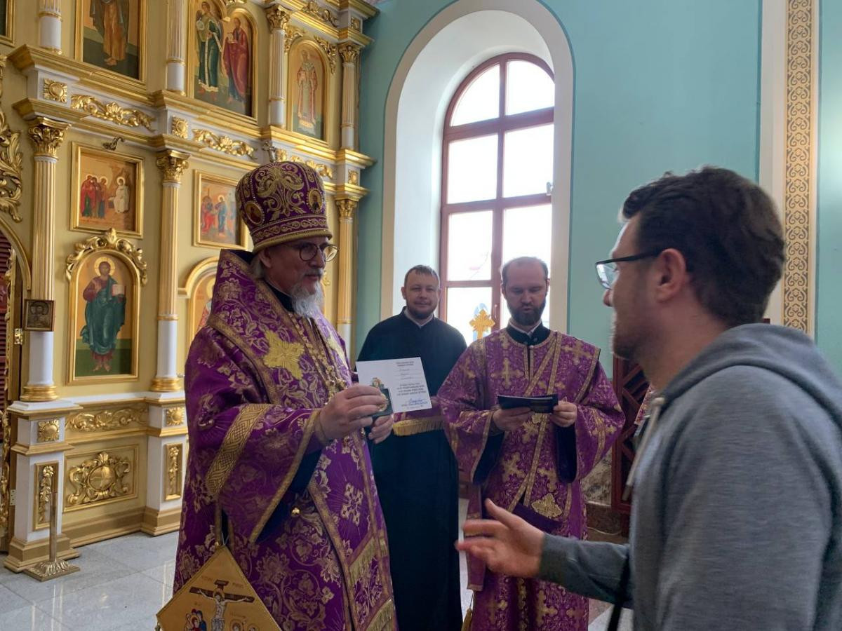 В этот день митрополит Димитрий наградил епархиальными наградами художников-иконописцев, расписывающих кафедральный собор в Чите.