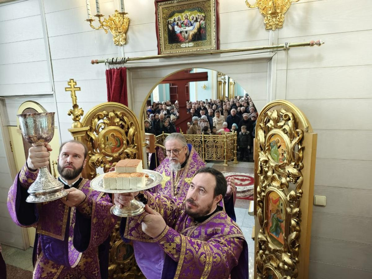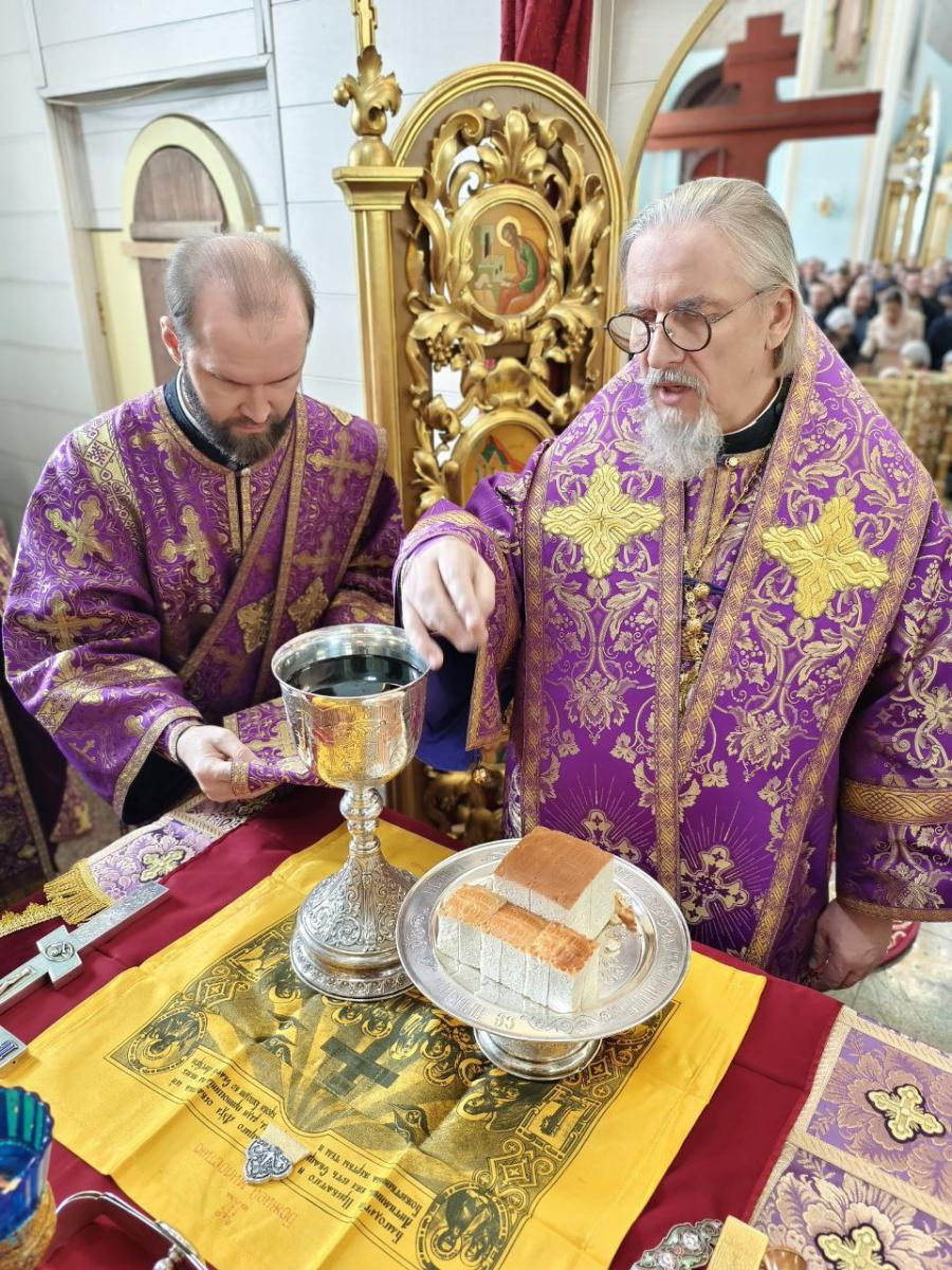 30 марта 2025 года, в Неделю 4-ю Великого поста, день памяти преподобного Иоанна Лествичника и преподобного Алексия, человека Божия, митрополит Читинский и Петровск-Забайкальский Димитрий совершил Литургию святителя Василия Великого в кафедральном соборе Казанской иконы Божией Матери города Читы.