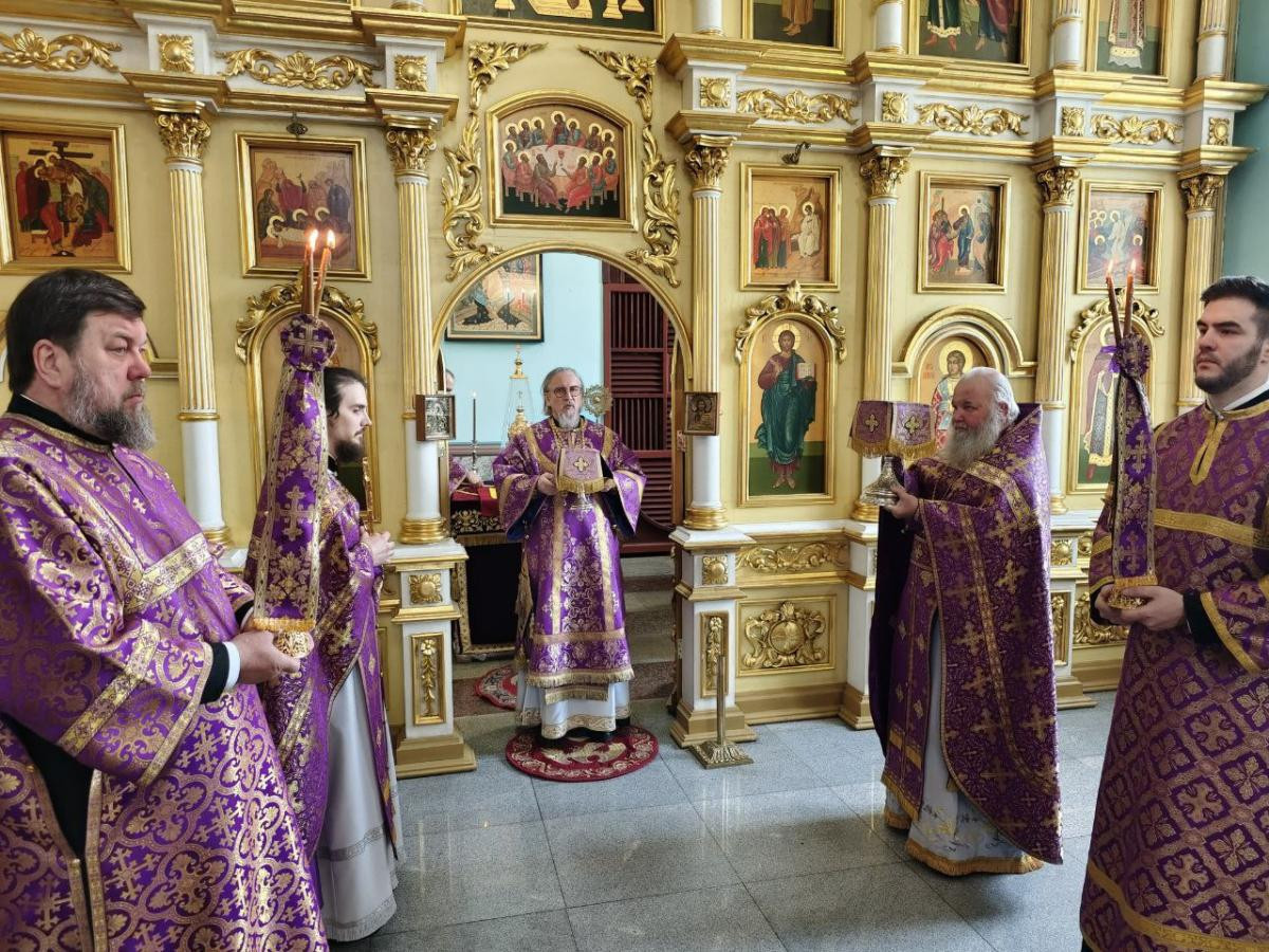 Его Высокопреосвященству сослужили клирики Казанского кафедрального собора г. Читы протоиерей Андрей Федотов и иерей Дионисий Миронов.