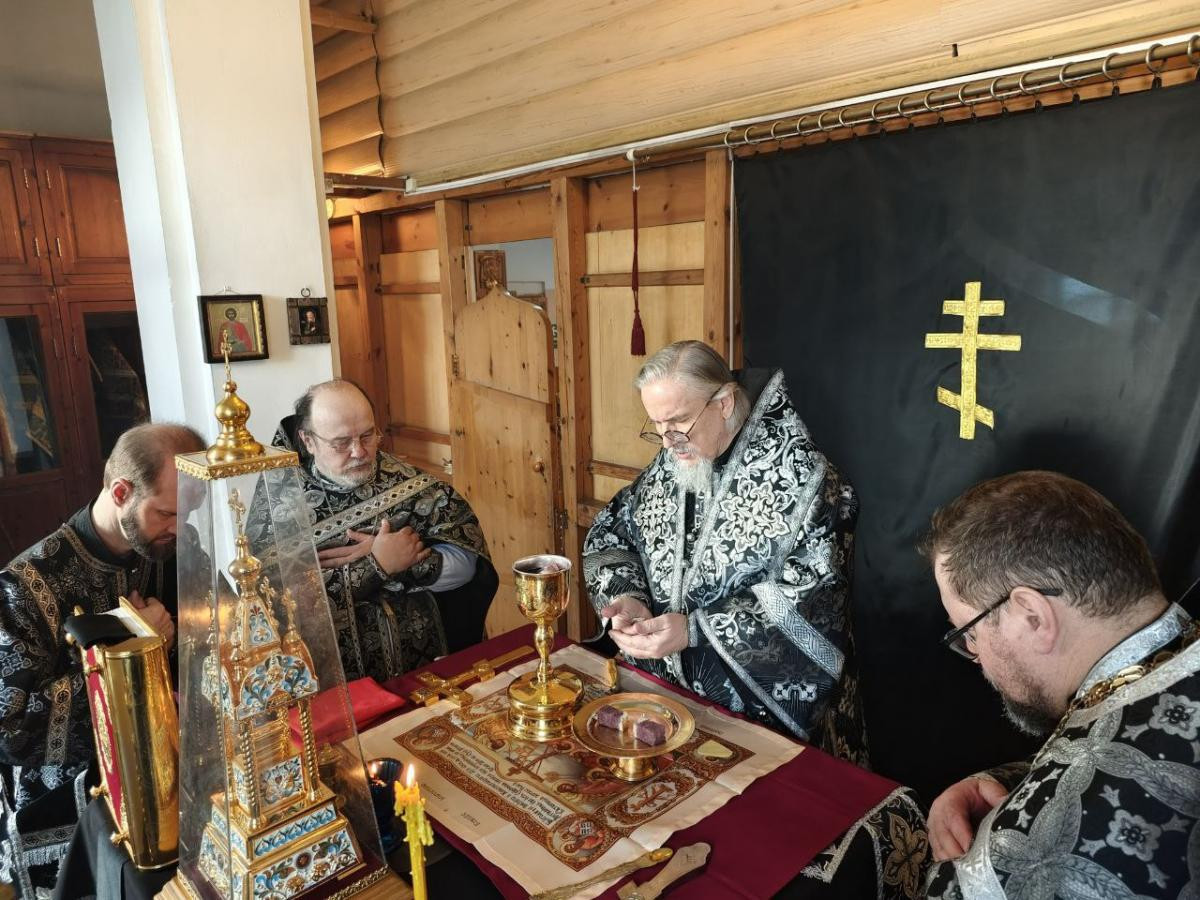 Перед Литургией были совершены уставные великопостные богослужения — утреня, часы, изобразительны и вечерня.
