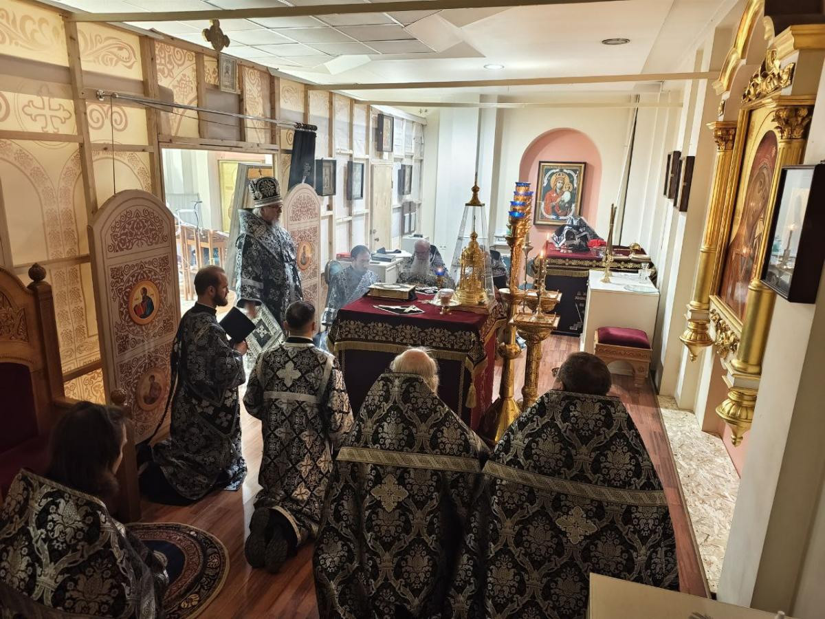 Диаконский чин: иеродиакон Иннокентий (Федоров), диакон Михаил Воробьев, диакон Илия Хасанов, диакон Кирилл Усынин, диакон Андрей Лощенко.