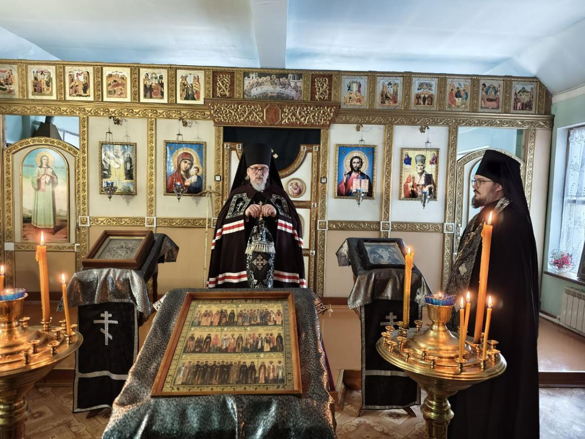 За богослужением молились: настоятель обители игумен Софроний (Валов), насельники и прихожане мужского монастыря.