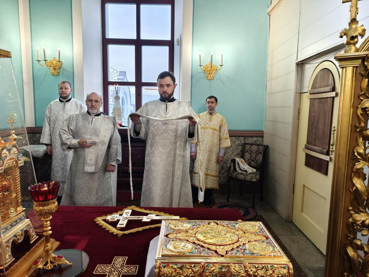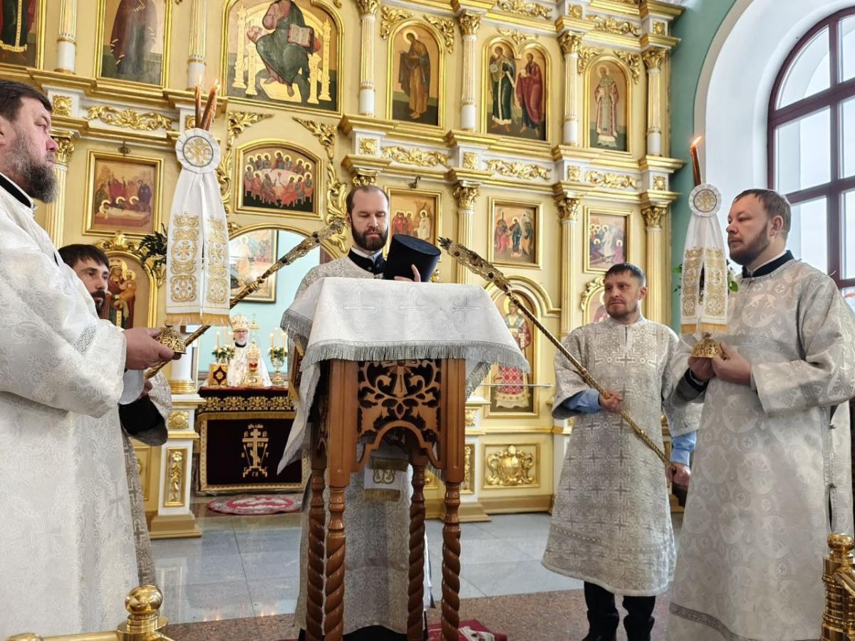 Диаконский чин: иеродиакон Иннокентий (Федоров), диакон Михаил Воробьев, диакон Дионисий Донской, диакон Дионисий Миронов, диакон Вячеслав Мельников.