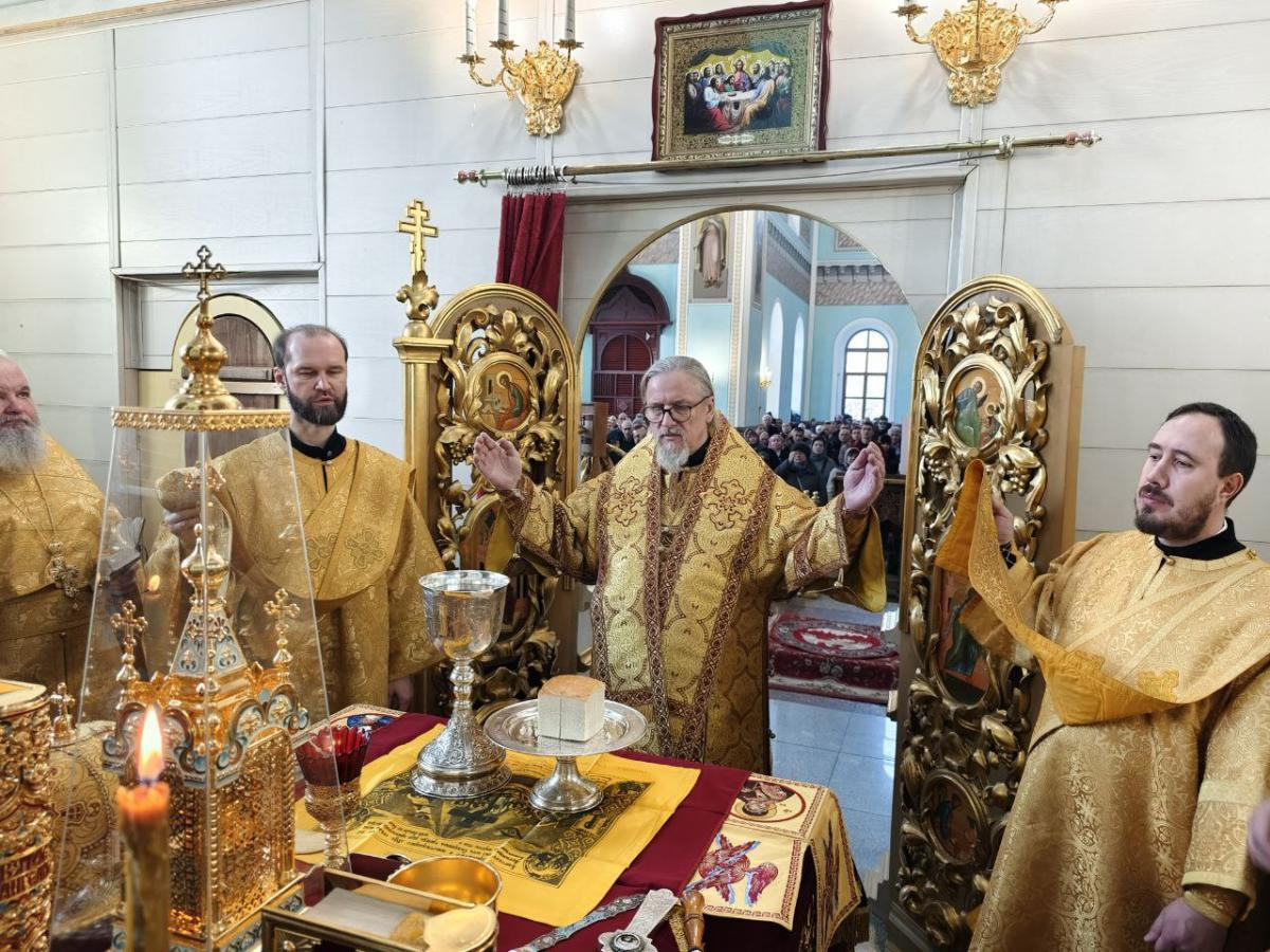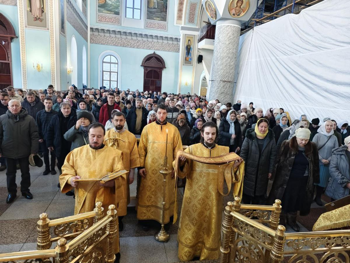 9 февраля 2025 года, в Неделю о мытаре и фарисее, день памяти Собора новомучеников и исповедников Церкви Русской, день перенесения мощей святителя Иоанна Златоуста (438 г.), митрополит Читинский и Петровск-Забайкальский Димитрий совершил Божественную литургию в кафедральном соборе Казанской иконы Божией Матери города Читы.