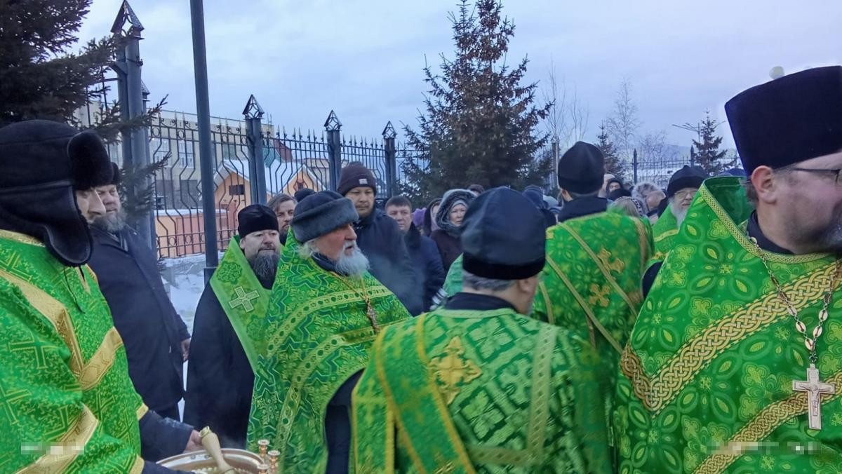 В этот день глава Забайкальской митрополии благословил бригаду иконописцев на дальнейшую роспись Казанского кафедрального собора в Чите и окропил всех святой водой.