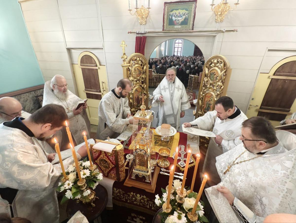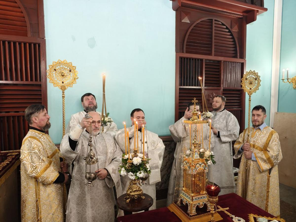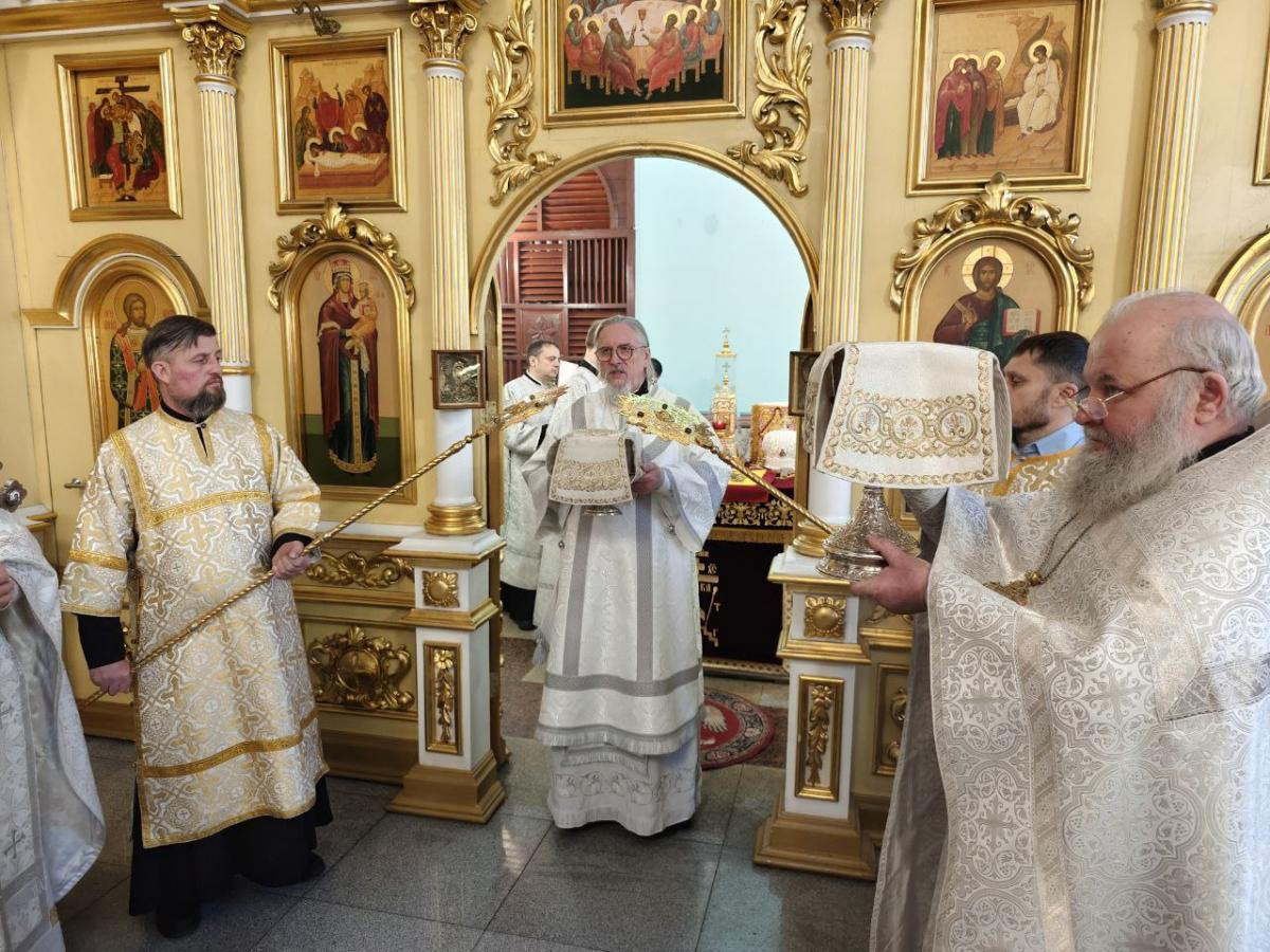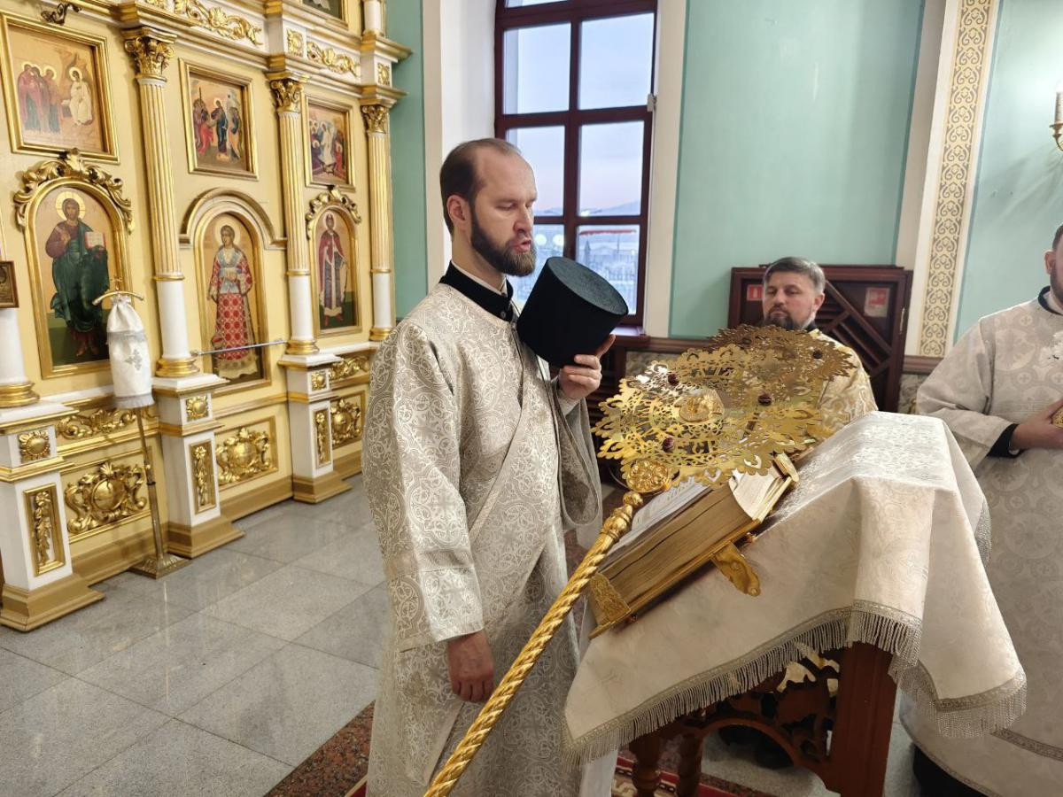 Диаконский чин: иеродиакон Иннокентий (Федоров), диакон Михаил Воробьев, диакон Илия Хасанов, диакон Дионисий Миронов, диакон Вячеслав Мельников.