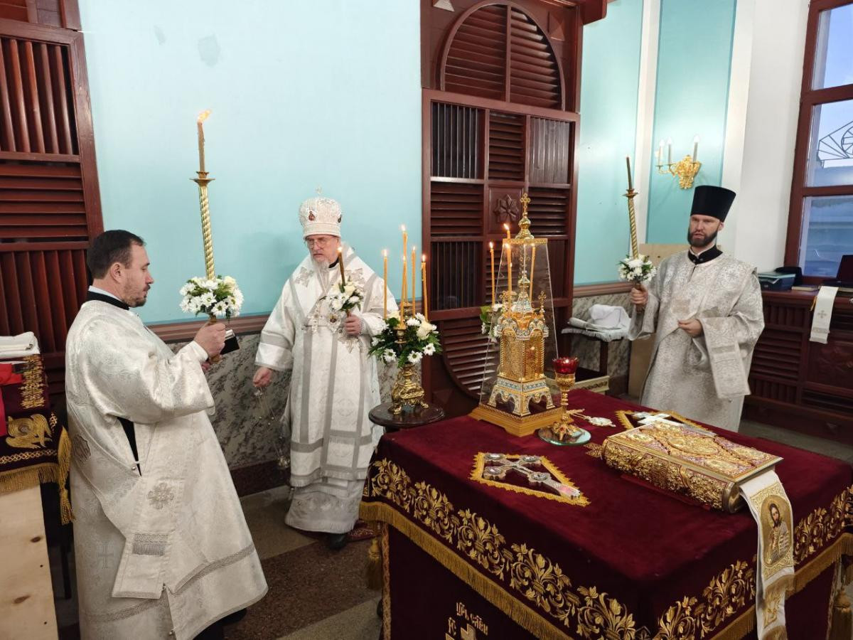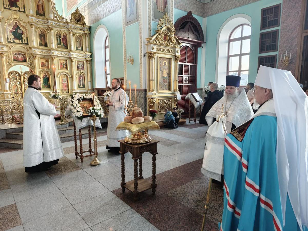 Его Высокопреосвященству сослужили клирики Казанского кафедрального собора г. Читы протоиерей Андрей Федотов и протоиерей Михаил Андрусь.