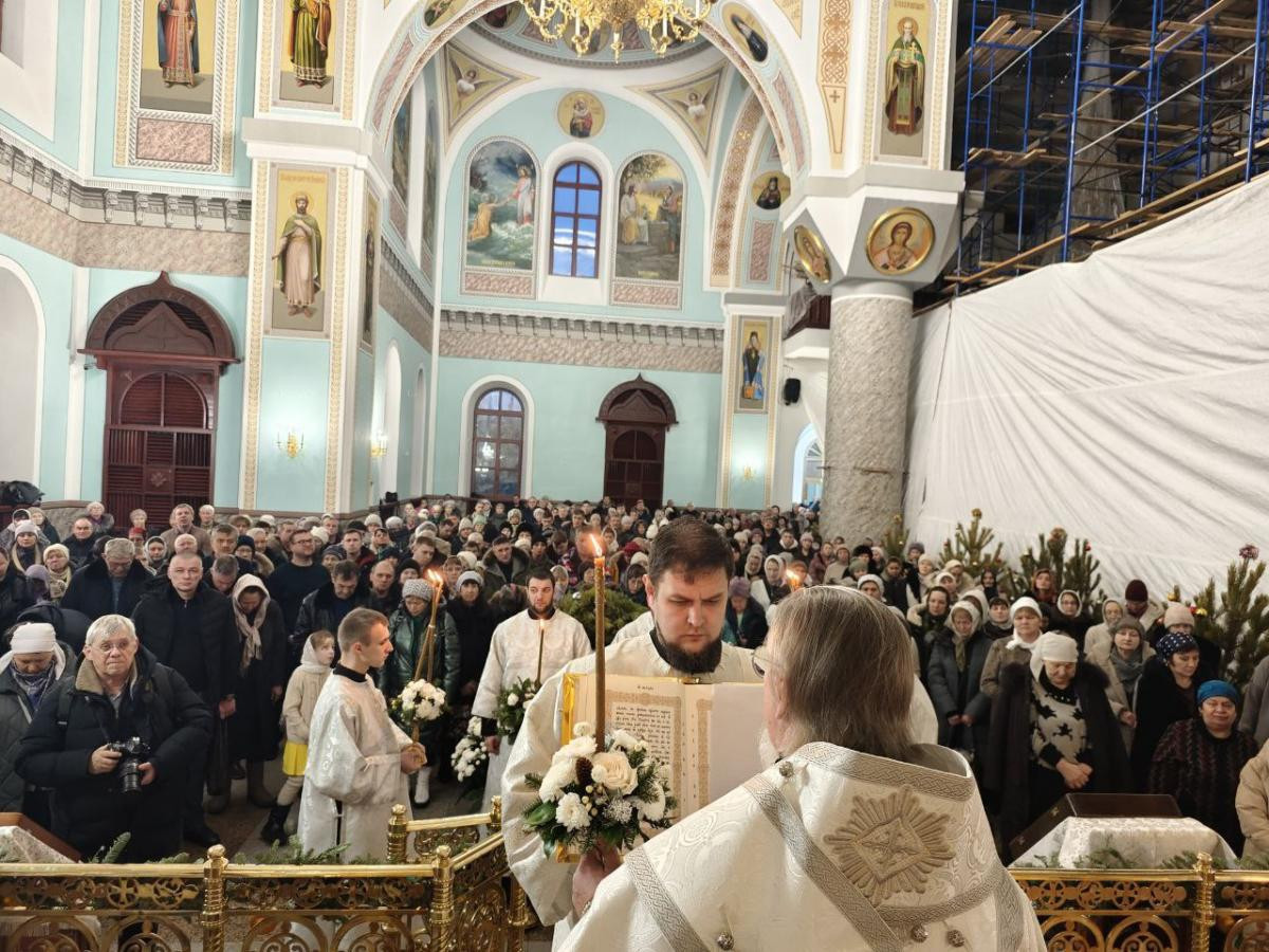 Вечером 6 января 2025 года, в канун праздника Рождества Господа Бога и Спаса нашего Иисуса Христа, митрополит Читинский и Петровск-Забайкальский Димитрий совершил великое повечерие и утреню в кафедральном соборе Казанской иконы Божией Матери города Читы.