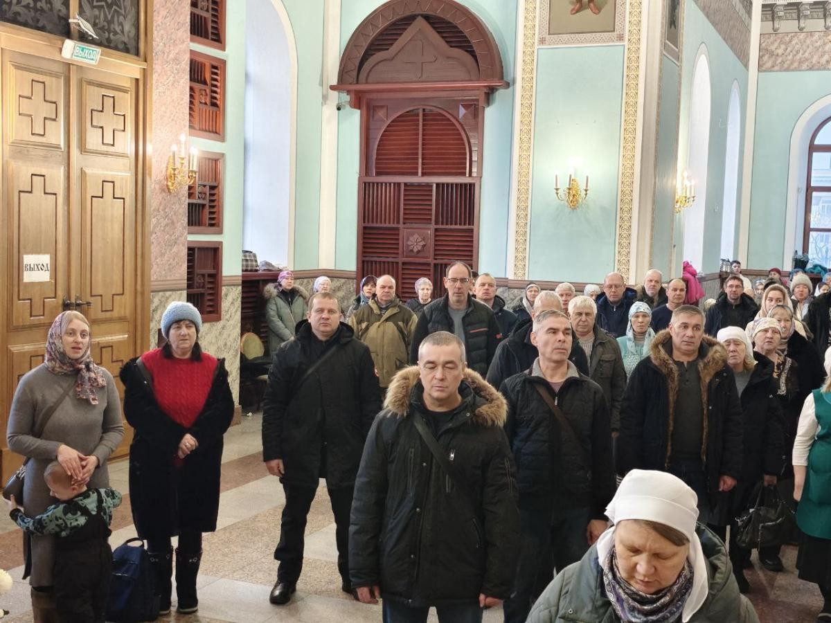 Его Высокопреосвященству сослужили: клирики Казанского кафедрального собора г. Читы протоиерей Андрей Федотов, протоиерей Михаил Андрусь и иерей Валерий Шаферов; насельник Успенского мужского монастыря г. Читы иеромонах Феофан (Груша).