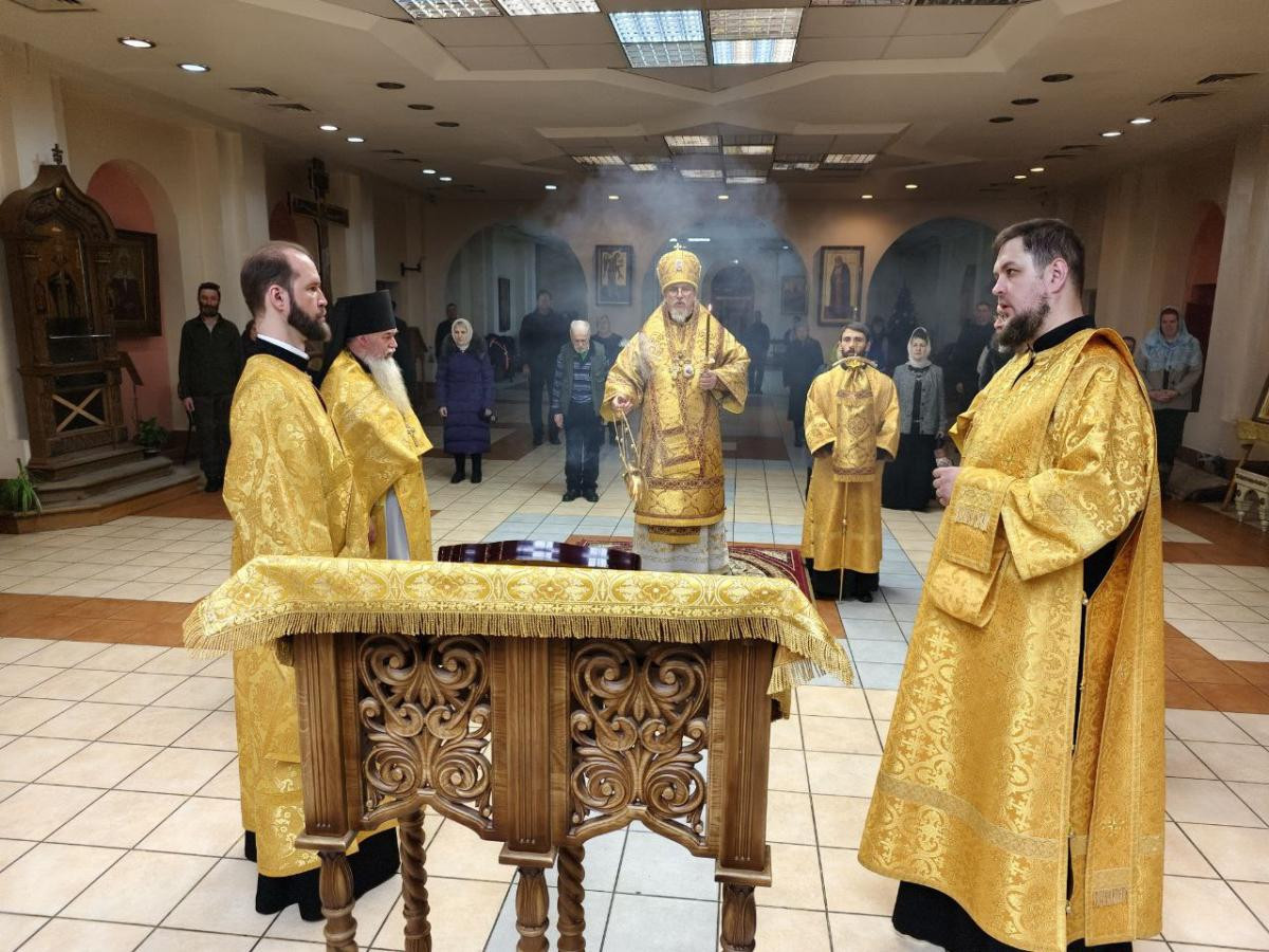 По заамвонной молитве владыка Димитрий совершил славление святителю Иосафу, епископу Белгородскому.