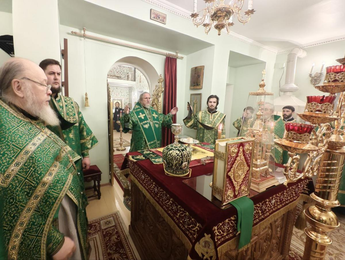 Его Высокопреосвященству сослужили клирики женского монастыря иеромонах Алипий (Федотов) и иерей Владимир Новоспасский.